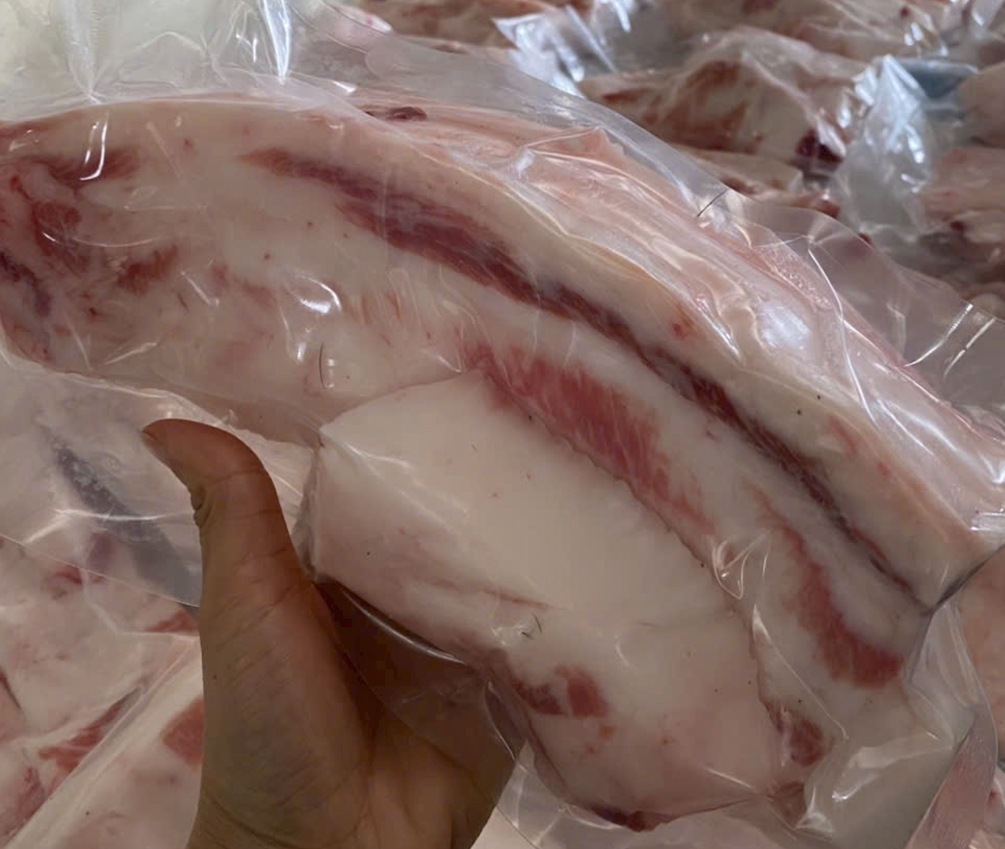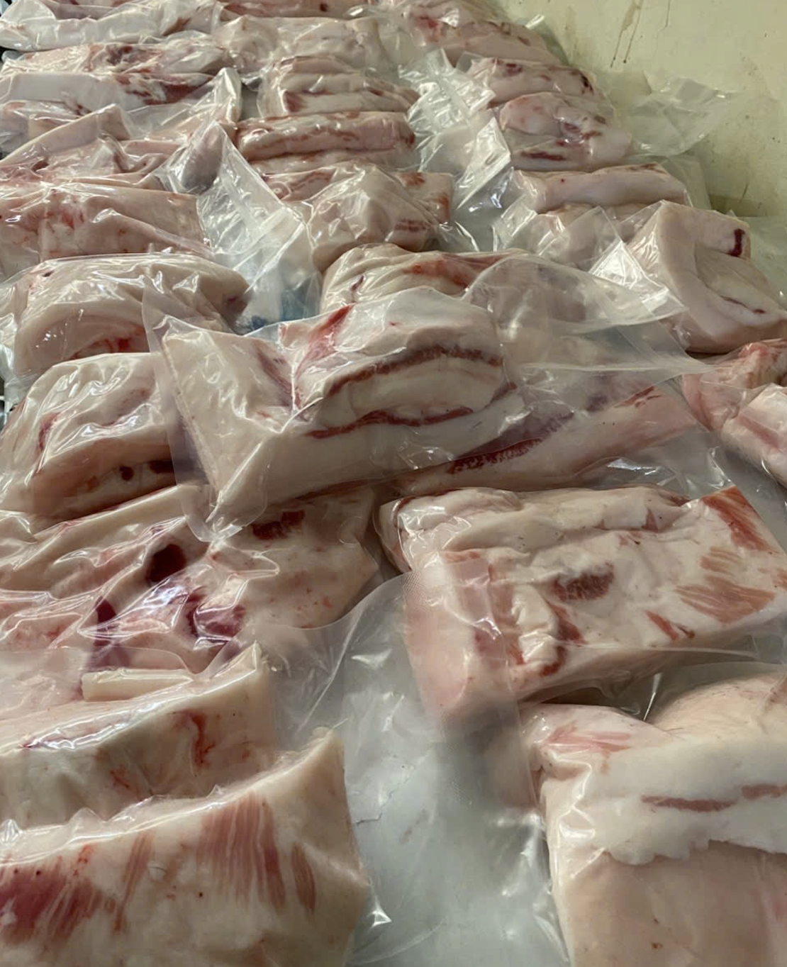 Mỗi ngày, cơ sở của Đào Hoa chỉ gom được khoảng 30-50kg mỡ khẩu lợn đen. Mỡ được chia khẩu nhỏ đóng túi hút chân không theo trọng lượng 1 kg/túi. Số lượng thịt mỡ này sẽ gửi cho các khách sỉ ở Hà Nội ngay trong ngày.