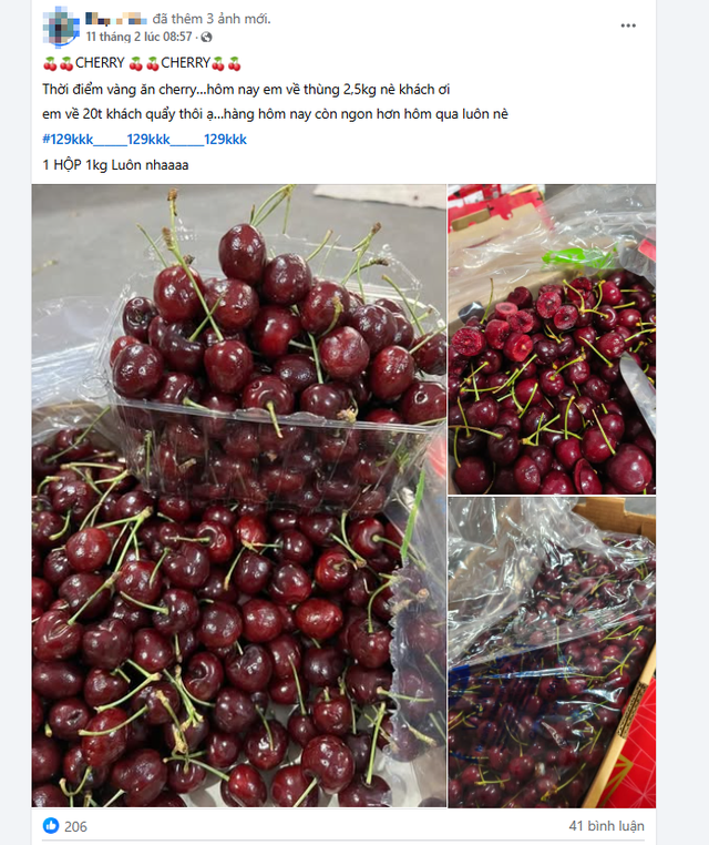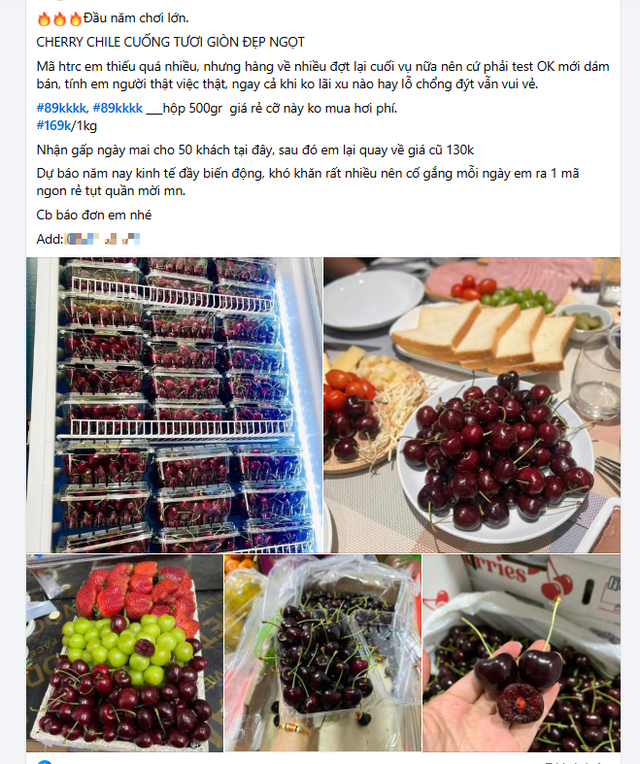 Trên các nền tảng mạng xã hội, giá cherry được rao bán chỉ từ 120.000 -169.000 đồng/kg, thậm chí có nơi bán với giá chỉ 100.000 đồng/kg.