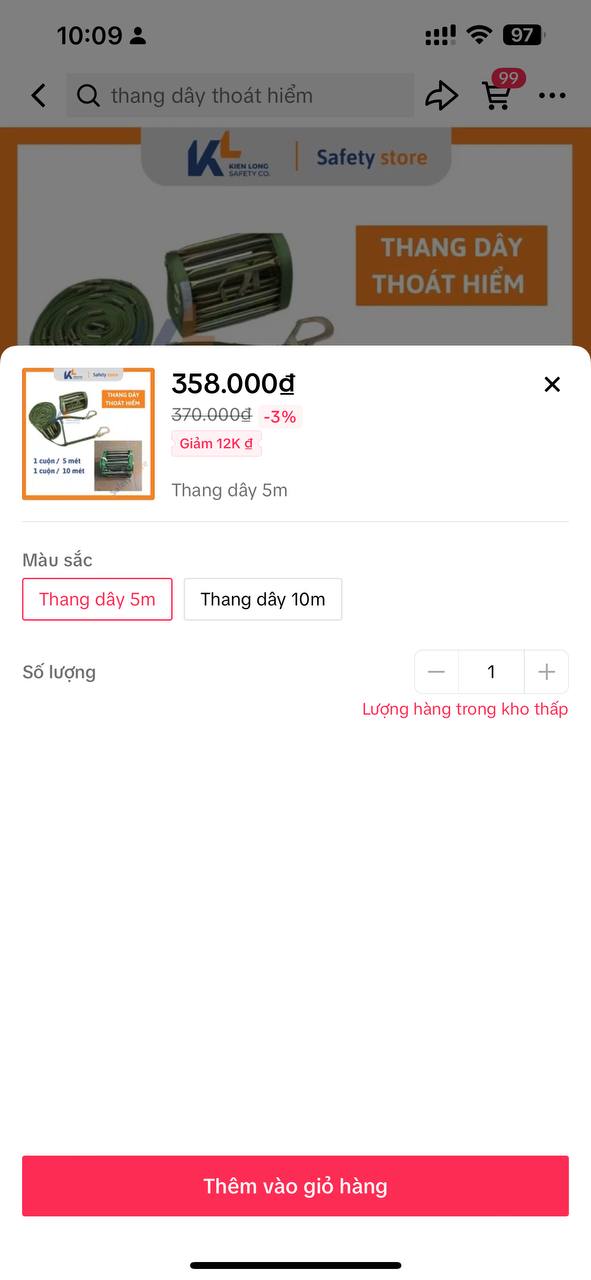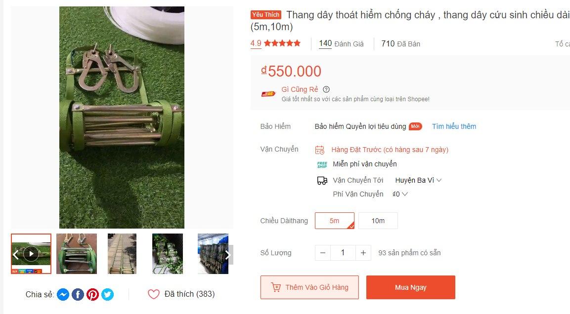 Cụ thể, trên sàn thương mại điện tử, cũng cùng mặt hàng thang dây cứu hộ này, giá sẽ dao động trong khoảng 410.000 - 520.000 đồng, thậm chí có nơi bán với giá gần 600.000 đồng.