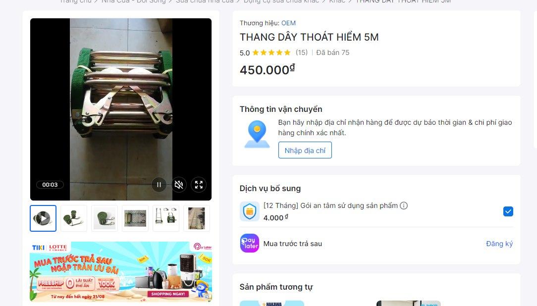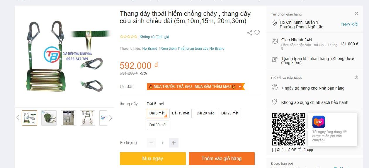 Tiếp nhận thông tin, chúng tôi tìm hiểu thêm về sản phẩm thang dây cứu hộ trên các địa chỉ bán online khác và nhận thấy có sự chênh lệch về giá thành khá nhiều.