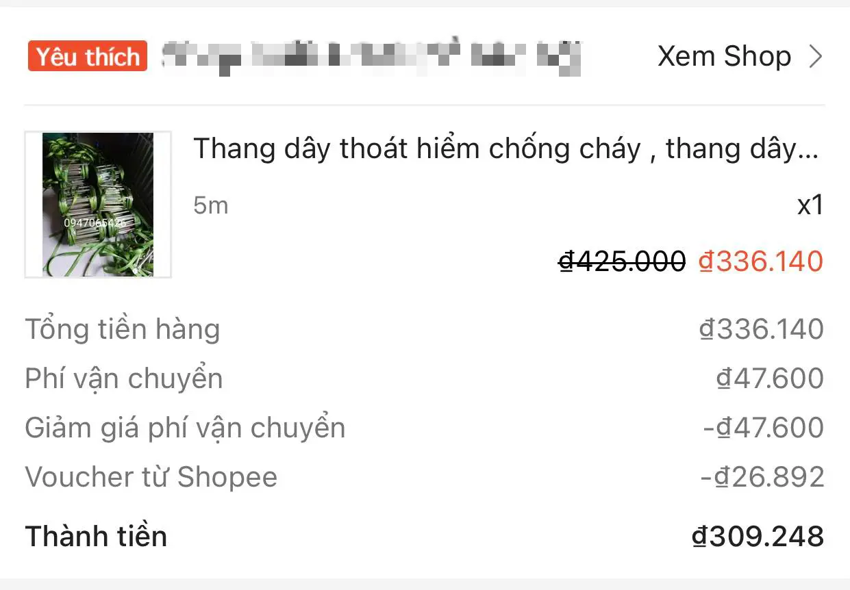 "Thời điểm đó (sáng 13/9), tôi mua thang dây cứu hộ với mức giá khoảng 425.000 đồng (loại 5m), nhưng được giảm còn khoảng 340.000 đồng.