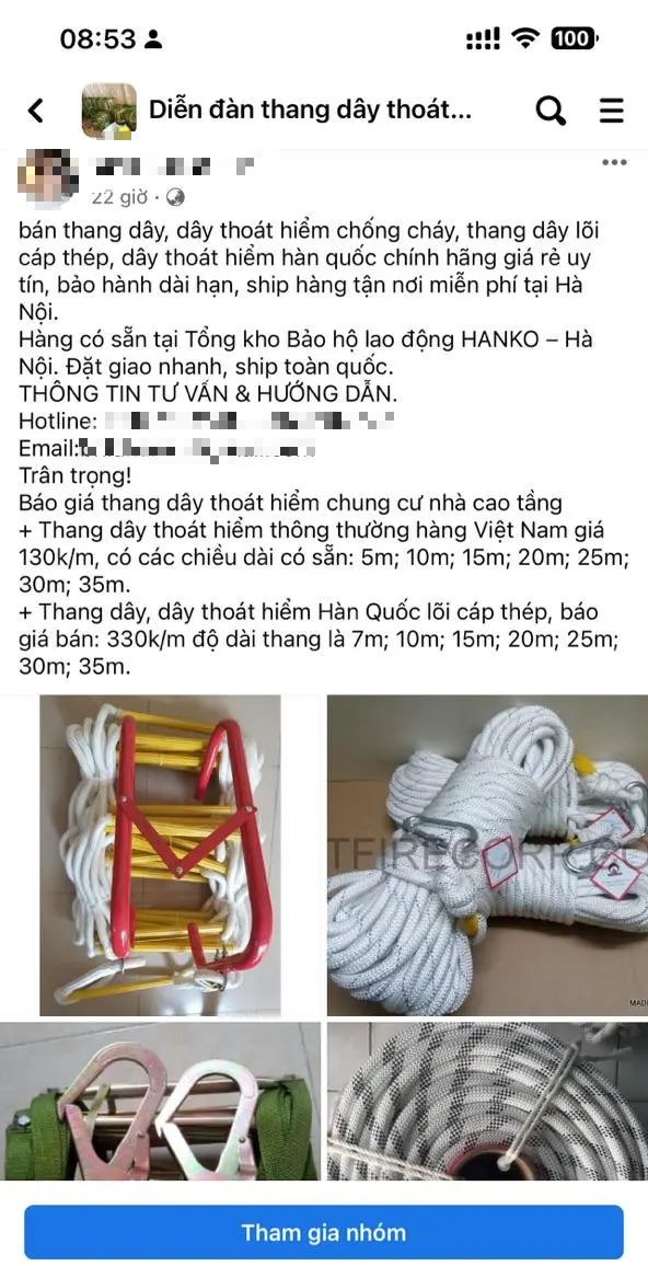 Bên cạnh đó, tại một sàn thương mại khác, giá bán thang dây thoát hiểm cũng rơi vào tình trạng tương tự.