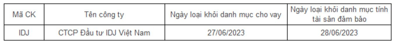 Cụ thể, Chứng khoán SSI mới đây đã thông báo loại hai mã cổ phiếu API và IDJ ra khỏi danh mục margin từ ngày 29/6. Trước đó, Chứng khoán SHS cũng đã loại cổ phiếu IDJ khỏi danh mục chứng khoán thực hiện giao dịch ký quỹ của công ty từ ngày 26/6.