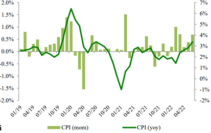 Tuy nhiên, lạm phát bắt đầu có dấu hiệu tăng tốc khi CPI tăng 3,4% so với cùng kỳ vào tháng 6, từ mức 2,86% trong tháng 5. Số liệu CPI mới nhất tháng 7 tăng 0,4% so với tháng 6 và tăng 3,6% so với cùng kỳ năm trước.