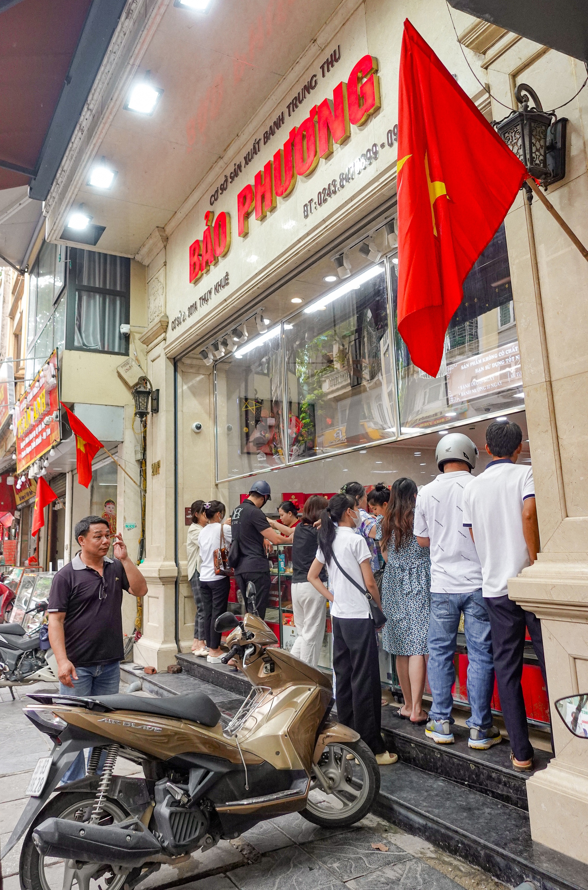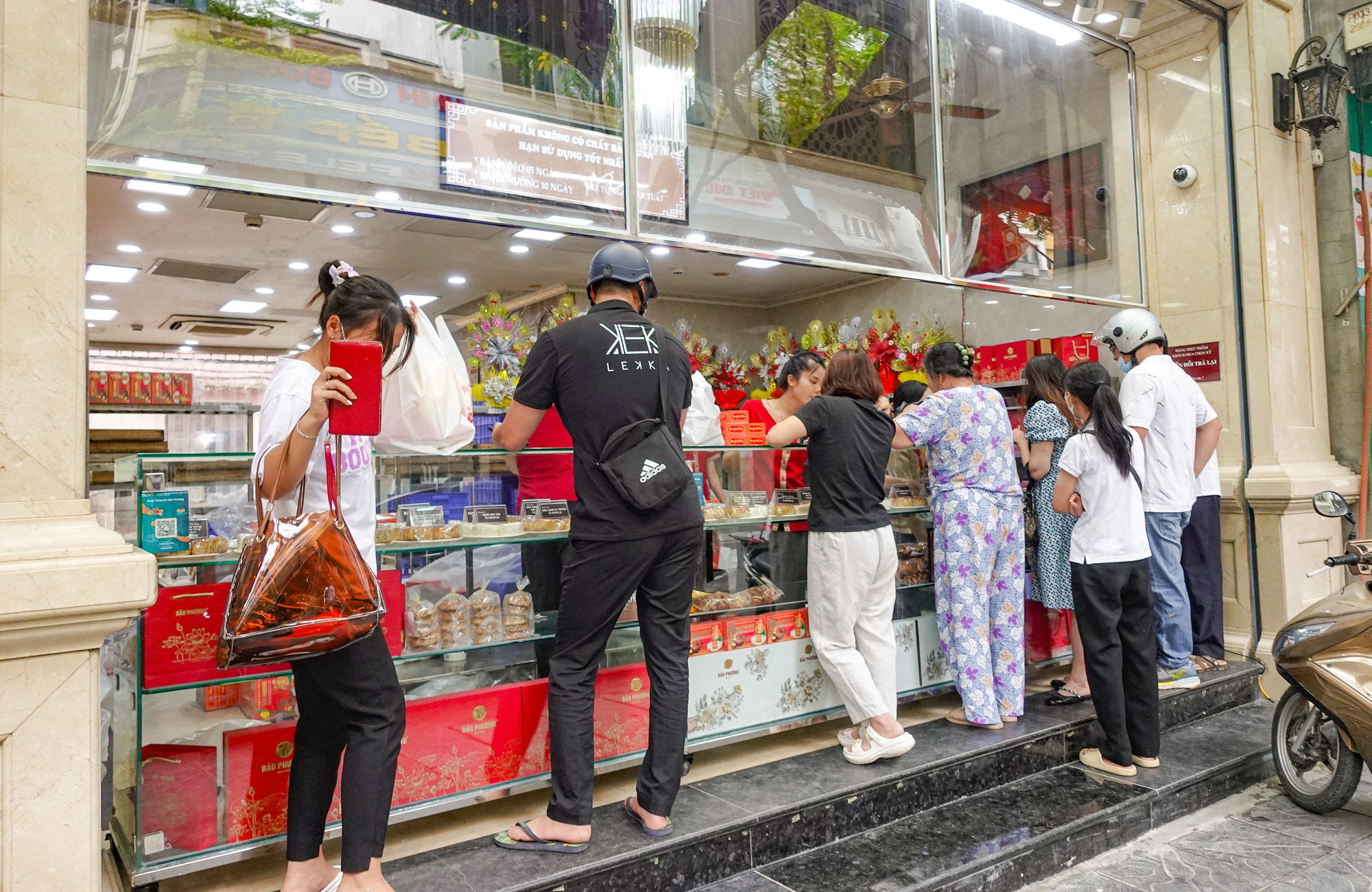 Ghi nhận vào những ngày gần đây, trước thời điểm Tết Trung thu khoảng 3 tuần, lượng khách ra vào 2 cơ sở của bánh Trung thu Bảo Phương đều không quá đông. Tuy lượng khách đều nhưng không còn cảnh phải canh giờ đi mua hay xếp hàng chờ "dài cổ" như vài năm trước. Dù chủ hàng đã chuẩn bị sẵn thông báo dán trước cửa để khách hàng chấp hành việc xếp hàng chỉn chu nhưng có vẻ như chuyện này rất hiếm khi xảy ra trong 2 mùa Trung thu gần đây.