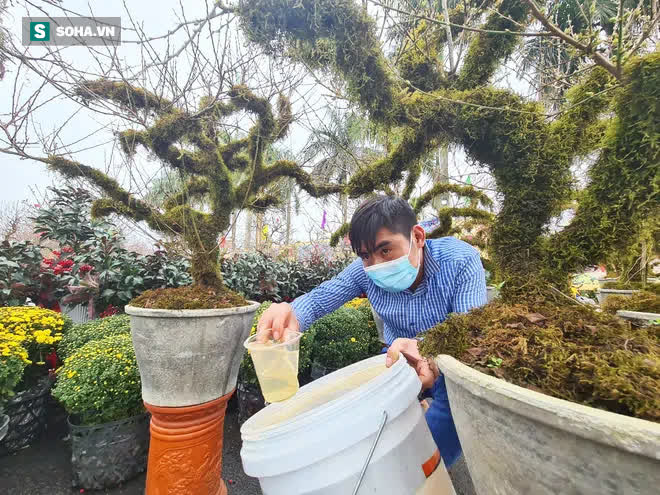 Những chậu mai trắng thân phủ đầy rêu xanh mốc được đưa từ SaPa xuống Hà Nội với giá cả chục triệu đồng/gốc đang chờ thượng khách rước về chưng Tết Nguyên đán Tân Sửu 2021.