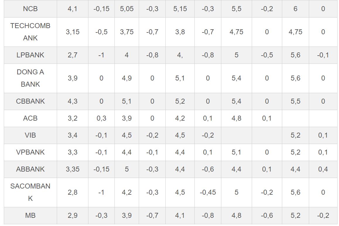 NCB, Eximbank, HDBank giảm lãi suất tới 3 lần, trong khi Viet A Bank, SHB và KienLong Bank có 4 lần điều chỉnh giảm.