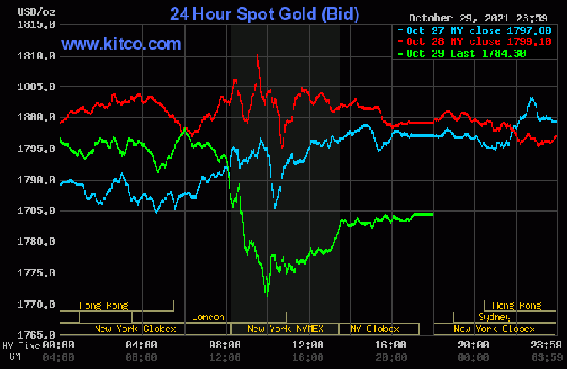 Chốt phiên cuối tuần, giá vàng giao ngay giảm 0,9% xuống 1.782,23 USD/ounce. Giá vàng Mỹ giao tháng 12/2021 giảm 1,04% xuống 1.783,90 USD/ounce.