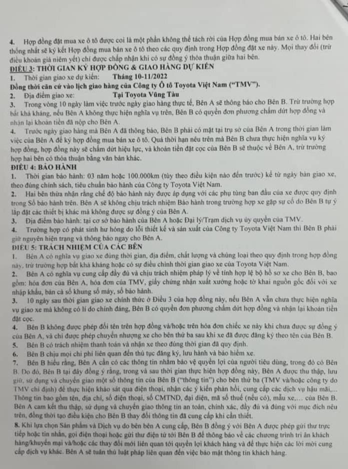 04/08/2022 02:56Mất trắng 50 triệu tiền cọc vì đại lý Toyota gài điều khoản bất lợi