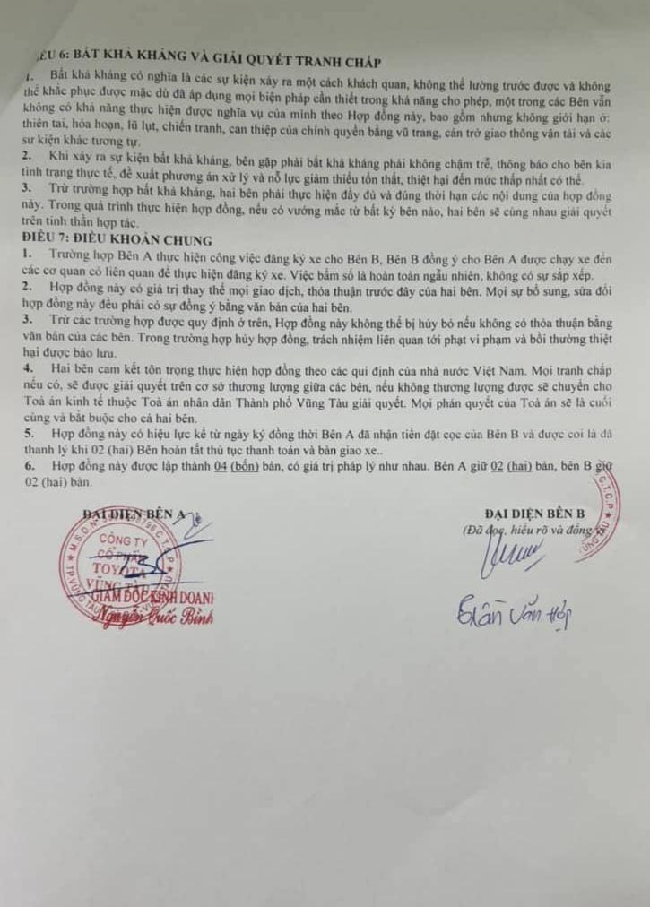 Qua tìm hiểu của VietNamNet, đại lý Toyota Vũng Tàu đã lợi dụng sự dễ dãi và thiếu hiểu biết của khách hàng trong quá trình ký hợp đồng để đưa ra những điều khoản bất cân xứng, đẩy mọi rủi ro cho khách.