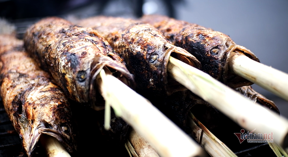 Hiện, giá cá của tiệm từ 140.000-200.000 đồng/con tùy kích cỡ. Giá đã bao gồm bún, bánh tráng, rau sống ăn kèm và mắm nêm. Trung bình, thời gian nướng nếu nhanh là khoảng 20 phút/con, còn không thì 30 phút/con. Cá trước khi nướng được moi sạch ruột, xiên sả và mía qua miệng cá vào thân rồi đặt lên bếp. Sả giúp làm thơm cá và nước mía chảy ra trong quá trình nướng làm ngọt cá.
