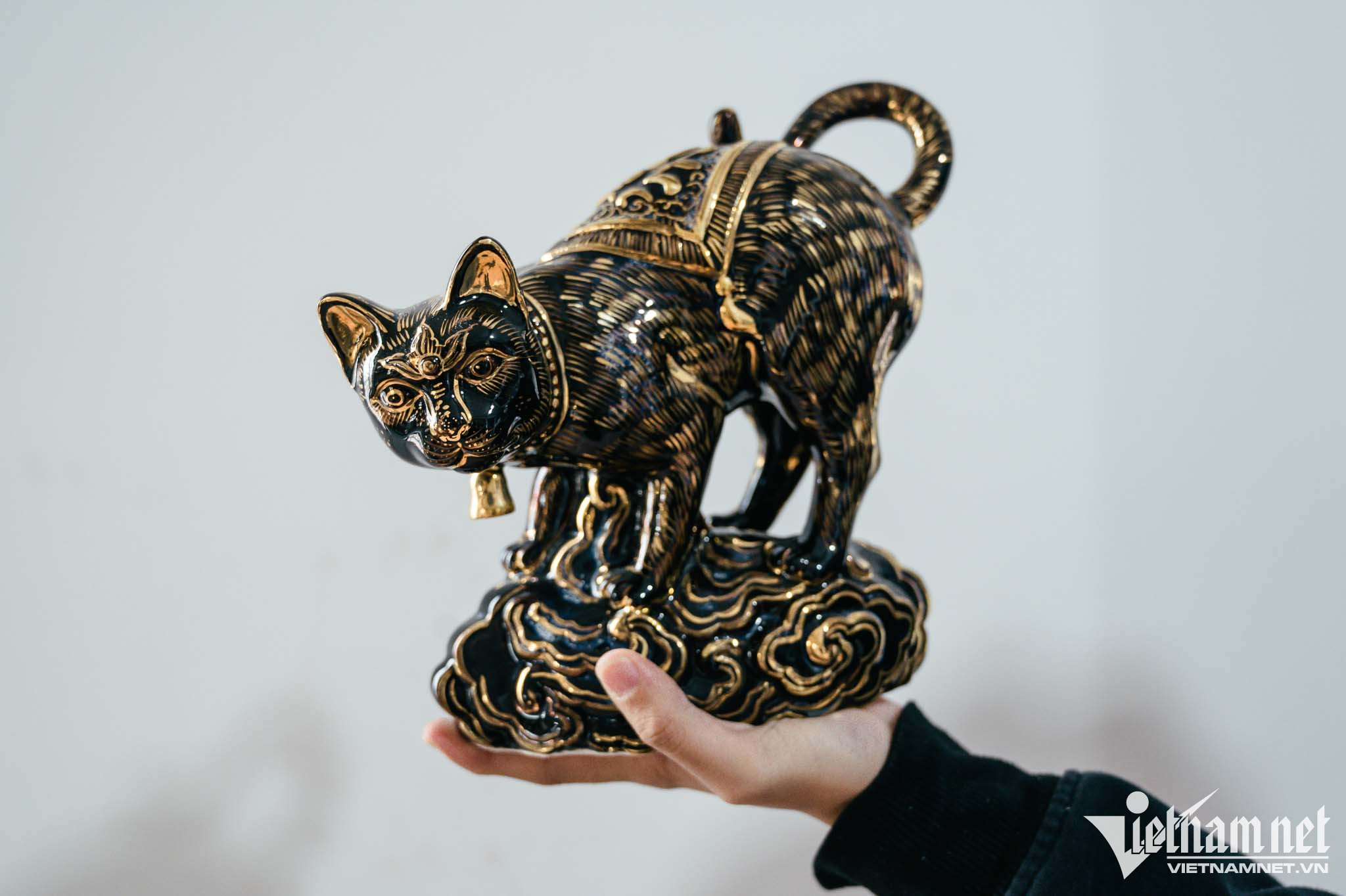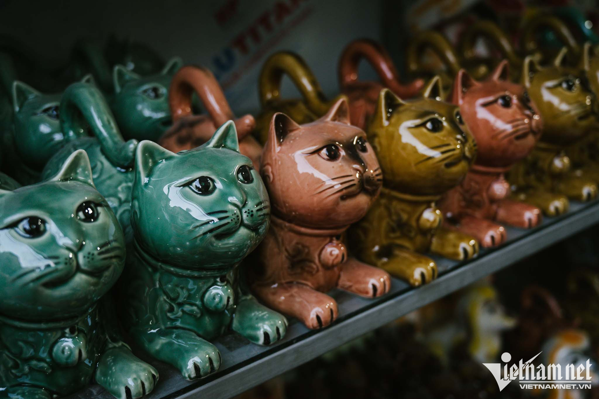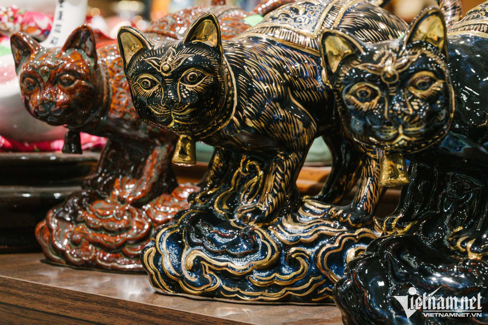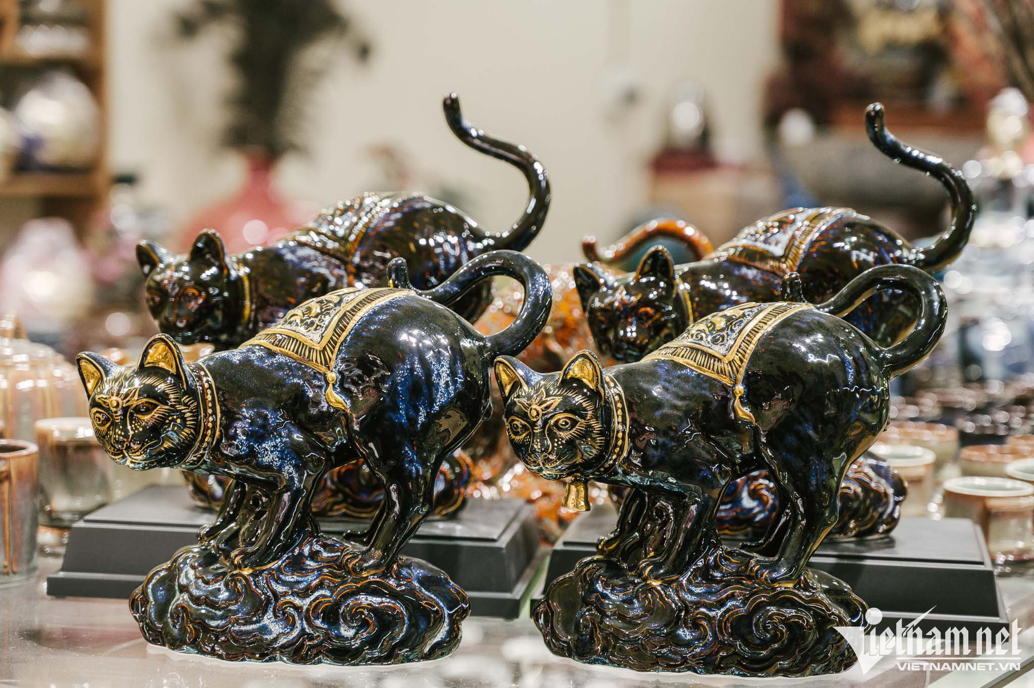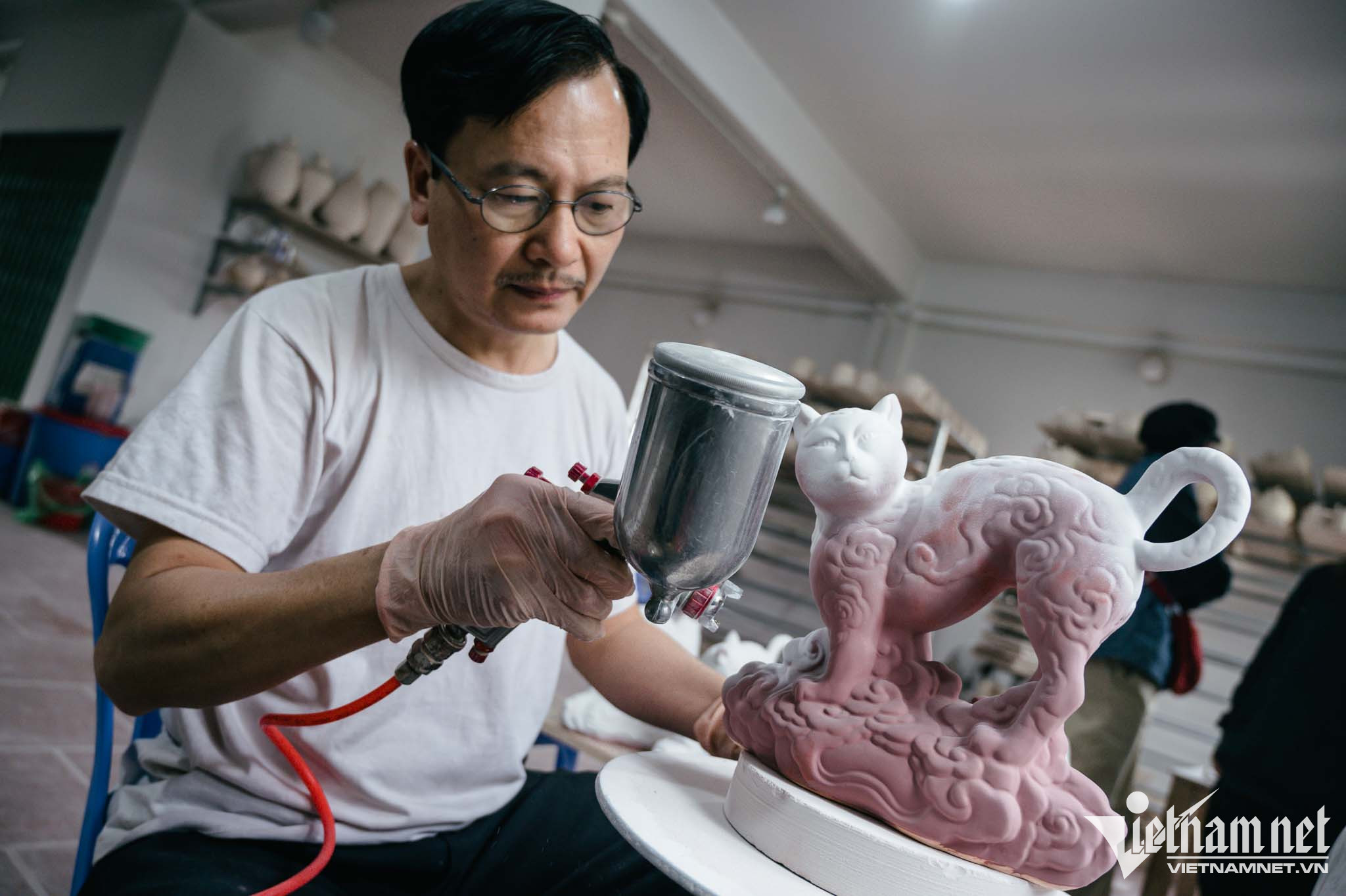 Mèo chiêu tài, mèo phong thủy gốm dát vàng hay bình hút tài lộc là những sản phẩm đang được gia công hoàn thiện gấp rút ở Bát Tràng (Gia Lâm, Hà Nội) để phục vụ khách hàng nhân dịp Tết Quý Mão.