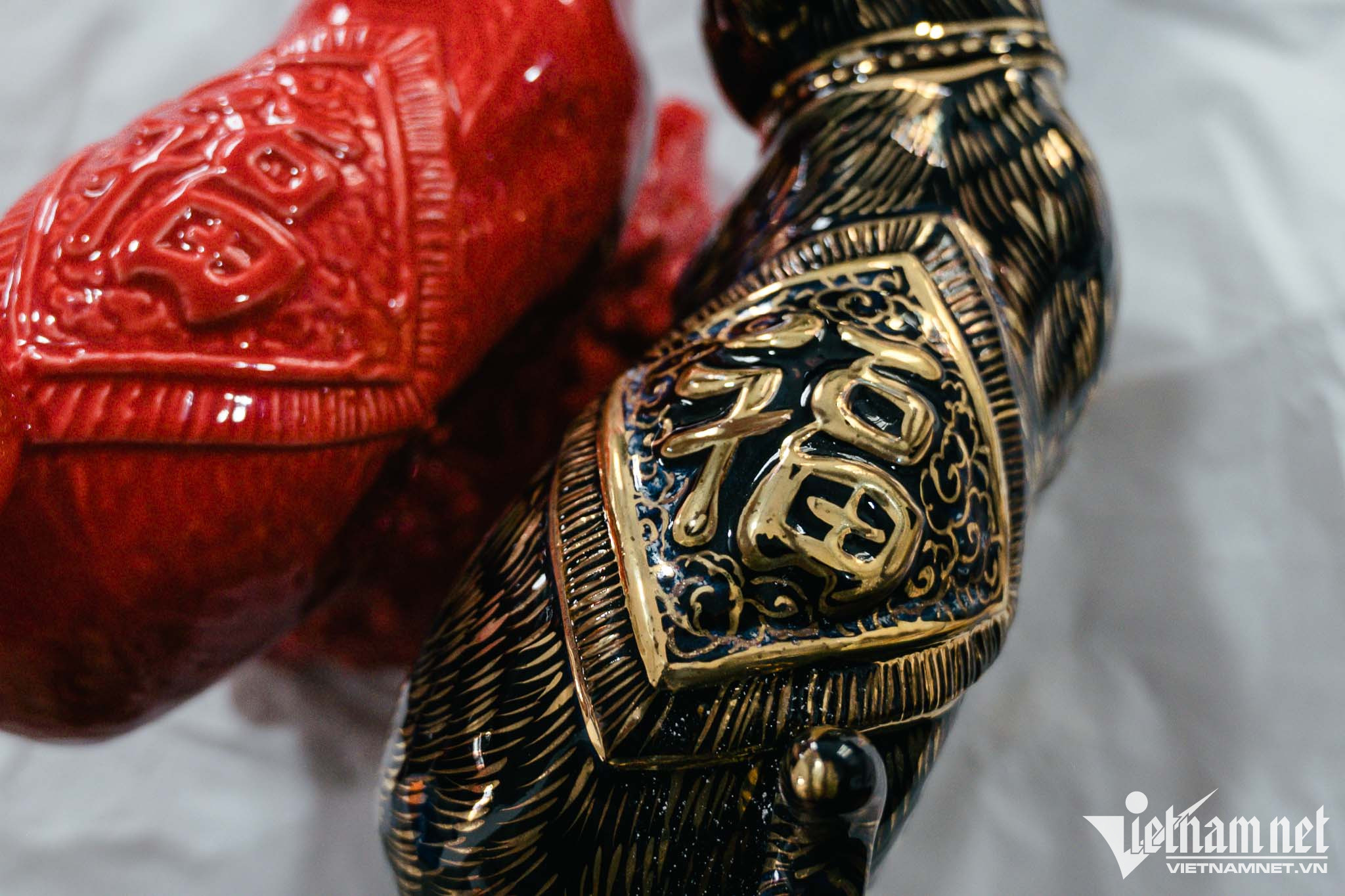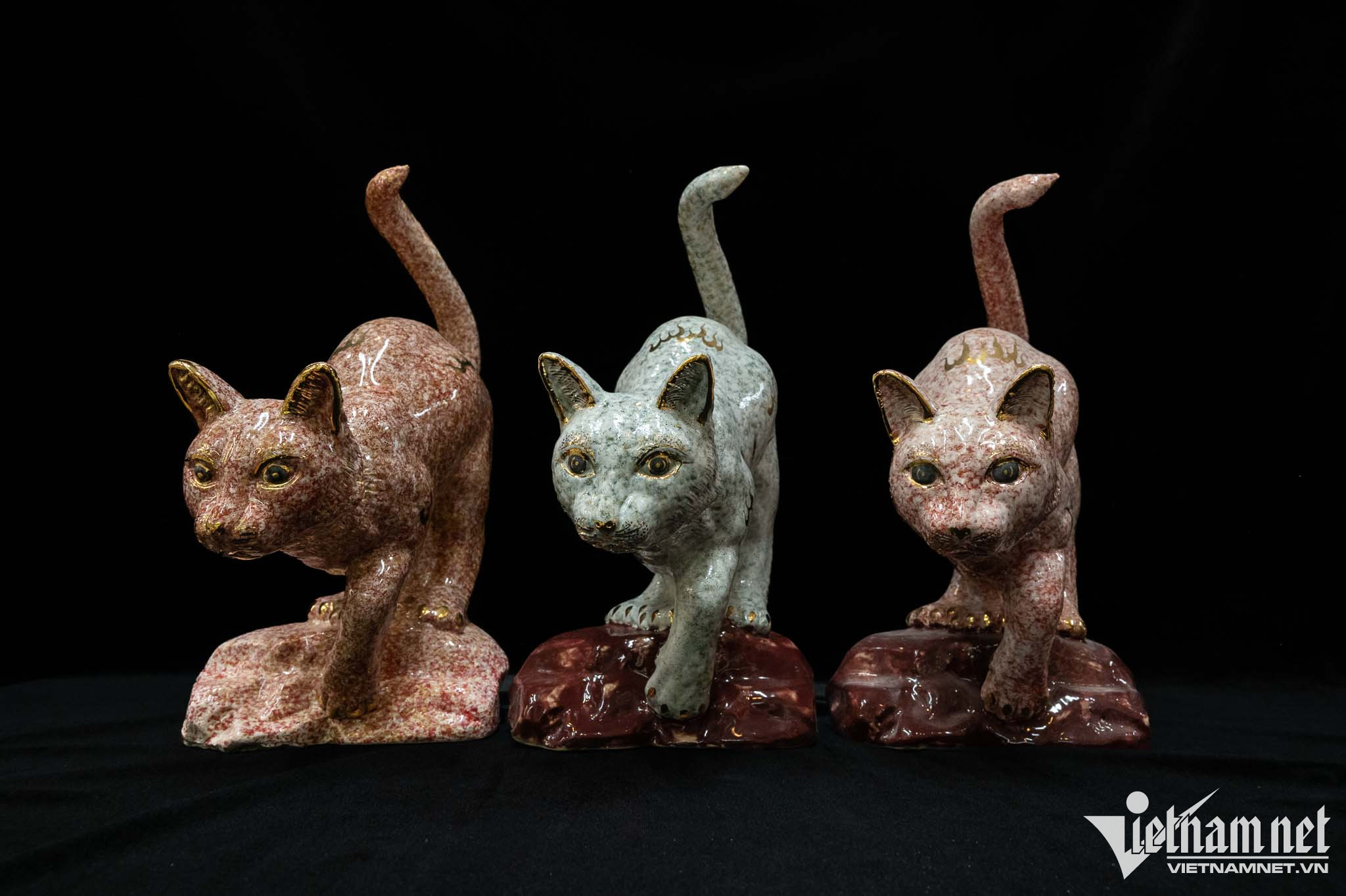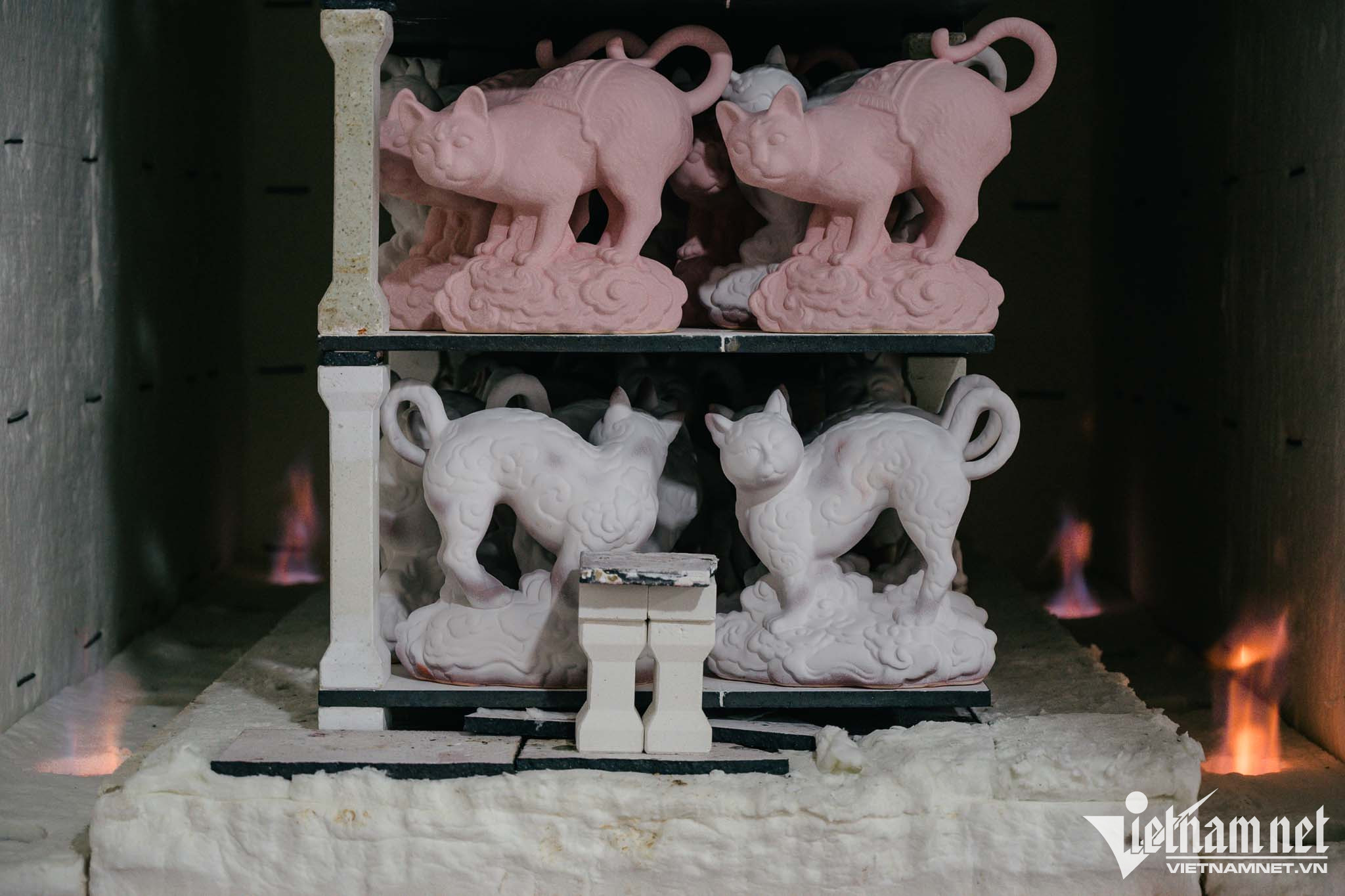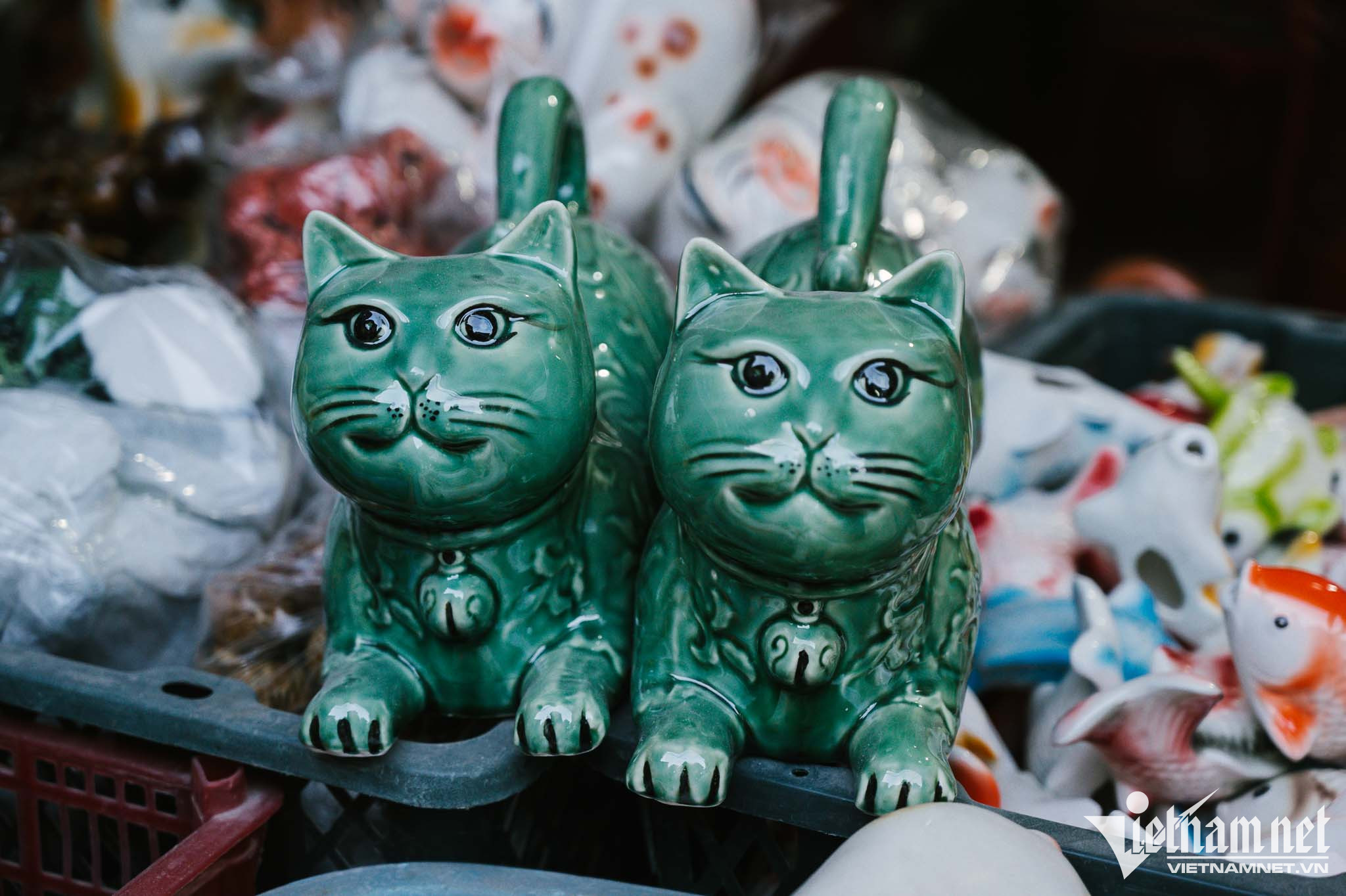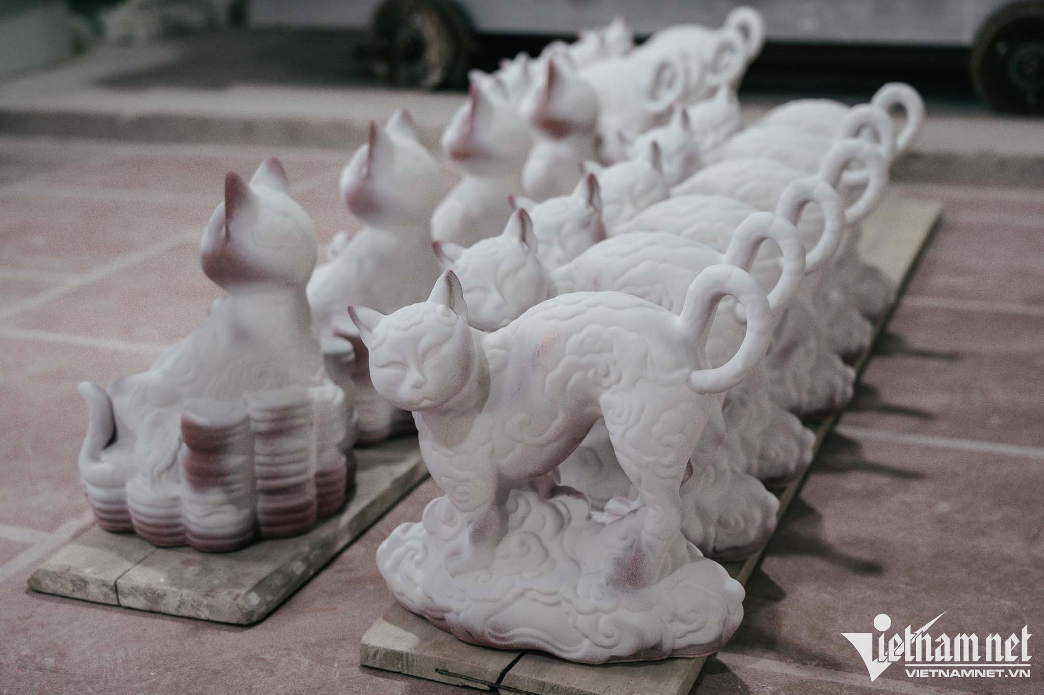 Mèo chiêu tài, mèo phong thủy gốm dát vàng hay bình hút tài lộc là những sản phẩm đang được gia công hoàn thiện gấp rút ở Bát Tràng (Gia Lâm, Hà Nội) để phục vụ khách hàng nhân dịp Tết Quý Mão.