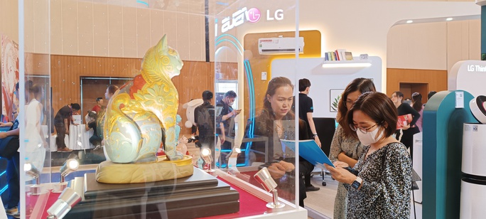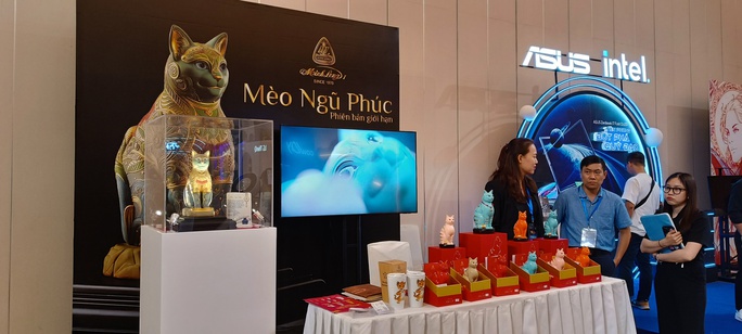 Tại một sự kiện công nghệ lớn vừa diễn ra ở TP HCM, nhiều khách tham quan bất ngờ với gian hàng của một thương hiệu gốm sứ trưng bày tượng linh vật mèo hay mèo phong thủy tạo nên không khí Tết "mèo" – Quý Mão năm nay.