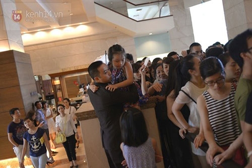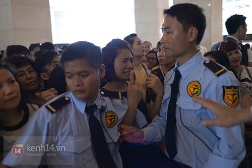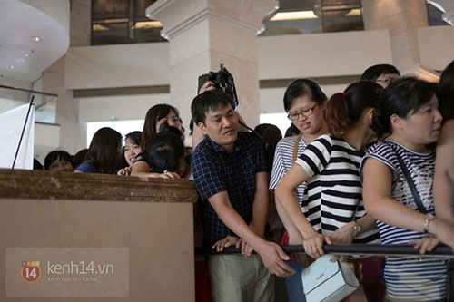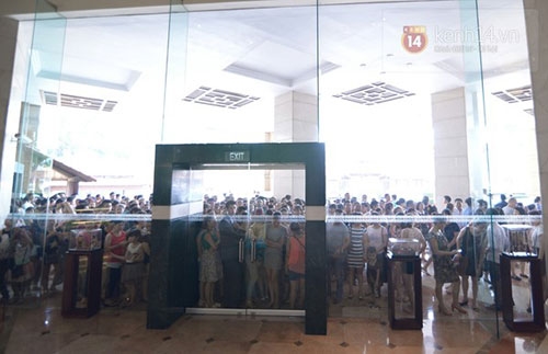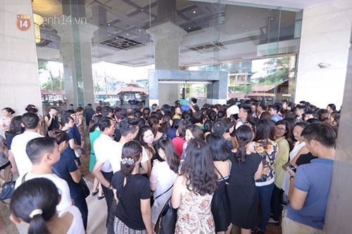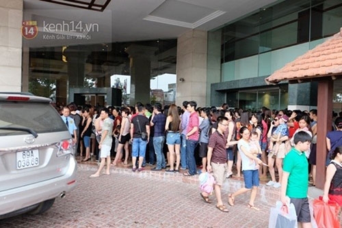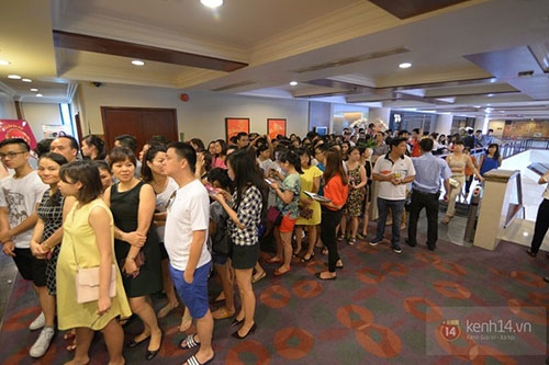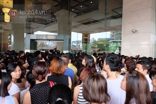 Trong khi đó, ở bên ngoài vẫn có hàng trăm người đứng xếp hàng dài chờ đợi |