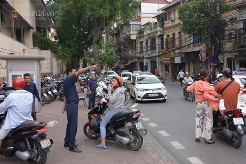 Khoảng 9h sáng, khách sạn Sofitel đã hết chỗ gửi xe từ sớm, người dân đến mua hàng phải gửi ở chùa Trấn Quốc rồi đi bộ sang. |