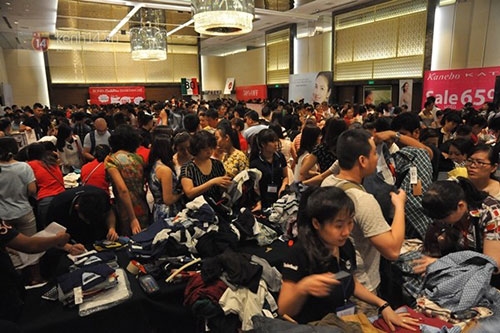 Bên trong khuôn viên diễn ra sự kiện, rất nhiều người chen chúc tìm kiếm những món đồ hiệu ưng ý. |