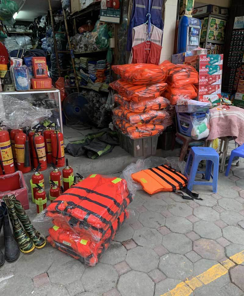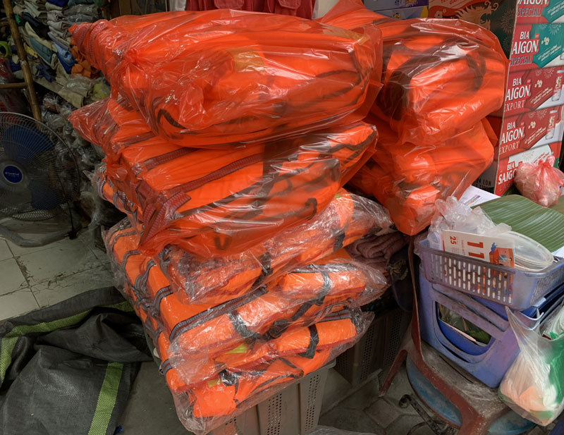 “Áo phao cứu sinh giá rẻ chỉ 40.000-50.000 đồng/chiếc. Còn loại mà được kiểm định về chất lượng thì giá 150.000 đồng/chiếc. Nhưng mặt hàng này đều cháy hàng hết rồi”, chị Lê Thị Dung - chủ một cửa hàng bán đồ bảo hộ trên phố Yết Kiêu (Hai Bà Trưng, Hà Nội) nói.