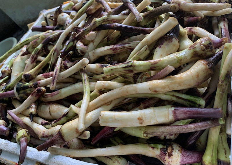 “Dịp này vào cuối vụ ngó, hàng không còn nhiều. Trung bình mỗi tuần tôi vẫn gom mua rồi đỏ sỉ cho các mối nhỏ lẻ khoảng 4-5 tạ ngó khoai. Còn vào chính vụ ngó, có ngày gom được 1,5-2 tạ ngó”, chị Đào tiết lộ.