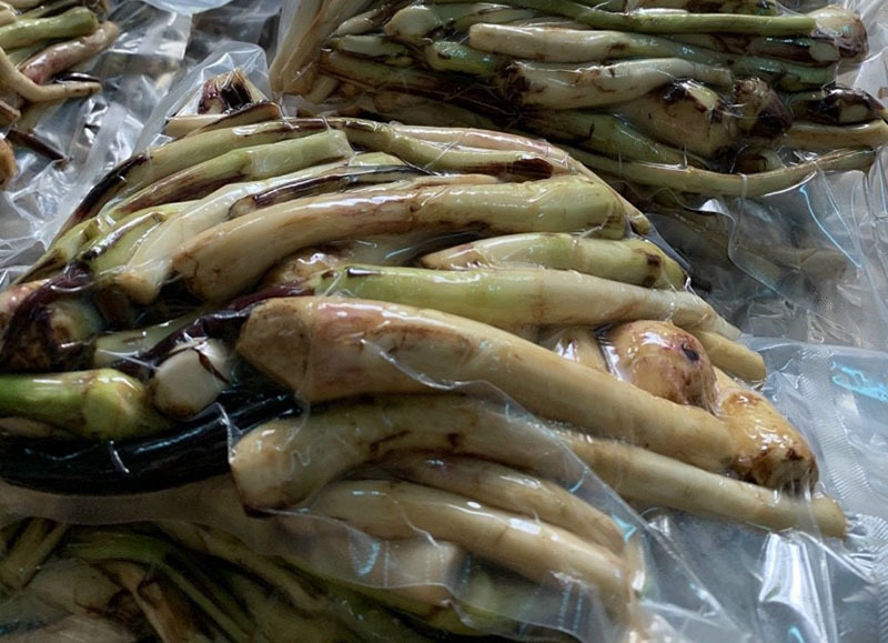 Cũng theo chị Đào, hái xong cứ để ngó đem bán luôn thì rất ít khách mua, bởi trước khi nấu phải ngồi cạo sạch vỏ, mất khá nhiều thời gian. Do đó, khi gom mua ngó của người dân trong bản, chị thường nhờ họ cạo vỏ, về chỉ việc rửa sạch sẽ, đóng túi nilon rồi hút chân không.