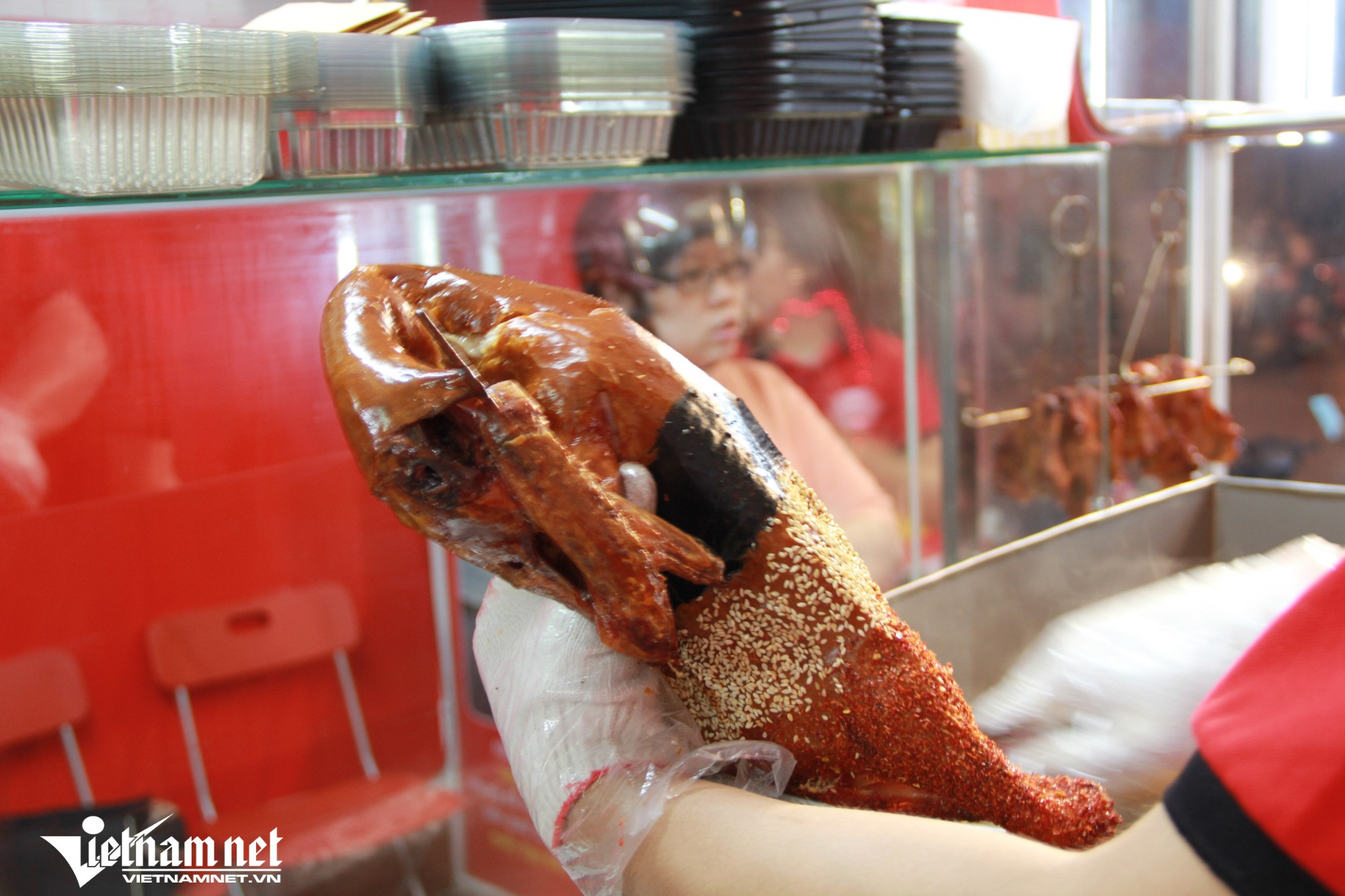Chủ quán tiết lộ, cách làm này cũng giúp cho phần da của vịt khi nướng sẽ căng phồng và giòn hơn.