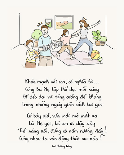 Trên mạng xã hội những ngày qua, nhiều bạn trẻ đã tích cực chia sẻ về lối sống khỏe mạnh, lạc quan trong mùa dịch để hưởng ứng chiến dịch “Bạn khỏe mạnh, Việt Nam khỏe mạnh” của Vinamilk. Trong đó, bộ tranh của Lai Thượng Hưng đã nhận được nhiều sự đồng cảm của cộng đồng mạng khi khắc họa những mong ước giản đơn về một cuộc sống khỏe mạnh qua góc nhìn của trẻ thơ.