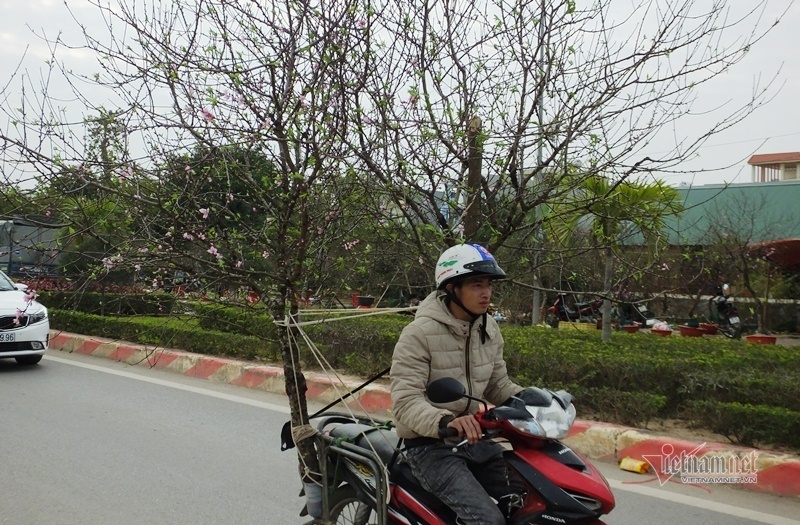 Tuy nhiên, năm nay do thông tin cấm đào rừng, sợ thương lái khắp nơi về gom đào nên anh phải lấy sớm, đến mùng 10 tháng Chạp bắt đầu đưa xuống thành phố bày bán.