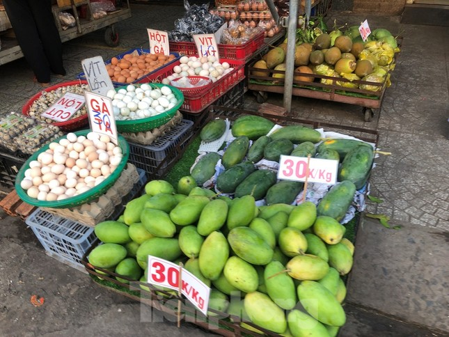 Tuy giá rau củ tăng cao nhưng các mặt hàng trái cây lại khá ổn định, như xoài cát từ 30.000-35.0000 đồng/kg, dừa xiêm 20.000 đồng/trái, đu đủ 30.000 đồng/kg…