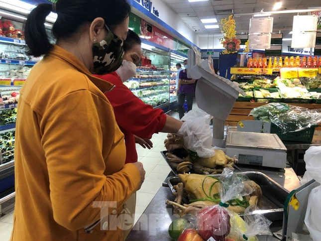 Trong khi đó, nhiều siêu thị cũng mở cửa hoạt động trở lại. Tại siêu thị Coop Mart (quận 6), nhiều khách hàng xếp hàng trước 8 giờ chờ siêu thị mở cửa để mua gà cúng. Mỗi mẻ gà luộc vừa đưa lên đều có người mua ngay, giá mỗi con tầm khoảng 200.000 đồng.