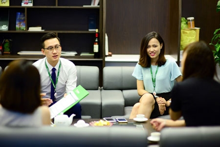Thay vì phải ngồi lấy số tại quầy, khách VIP được mời vào phòng riêng, có thể vừa uống trà, vừa nghe nhạc và nhận tư vấn từ nhân viên ngân hàng. Ảnh: TH. |