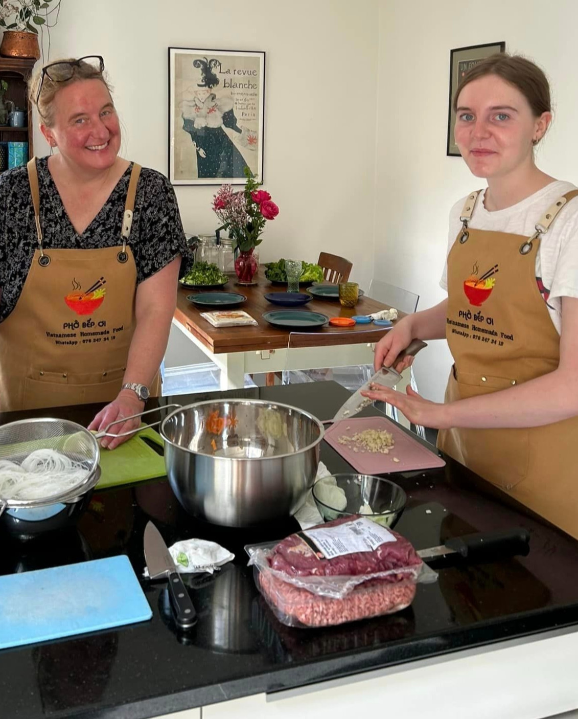 Khi công ty ở Thụy Sĩ chuyển trụ sở về Pháp, chị suy nghĩ và quyết định nghỉ hưu sớm để làm những điều mình mong muốn, trong đó có việc bán phở bò online – ước mơ mà chị ấp ủ thực hiện từ lúc còn làm việc cho các công ty lớn ở Việt Nam.