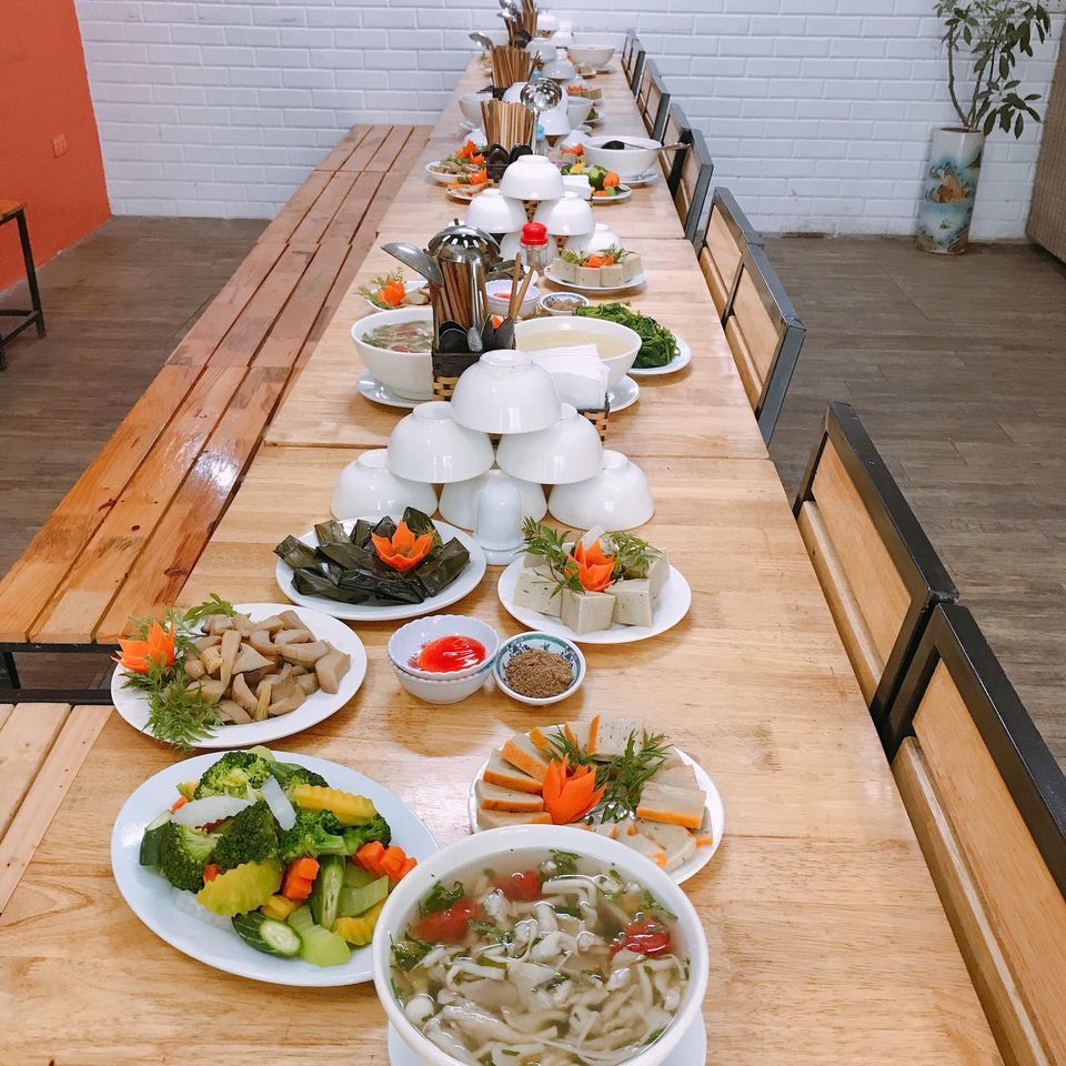 Thực đơn của quán khá phong phú và đủ phong vị, không hề kém cạnh món mặn. Từ những món ăn truyền thống đến hiện đại như: xôi vò hạt sen, gà chay hấp lá chanh, giò lụa, thịt chay quay, cá chay sốt ngũ liễu, tôm chay chiên, sườn chay xào chua ngọt, khoai lệ phố, nem hoa quả, rau xào ngũ sắc, canh nấm,... Từ món Việt đến món Âu, chẳng hạn như nem cuốn cố đô, dồi chay, giò nấm xào, gỏi mộc nhĩ,...