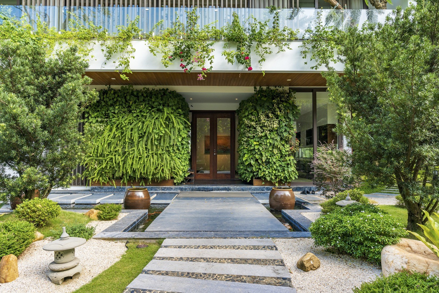 Nhiều chuyên gia về kiến trúc đánh giá, biệt thự này là mẫu công trình nhà ở điển hình, sử dụng sân vườn xanh mát để che bụi, cản tiếng ồn hiệu quả.