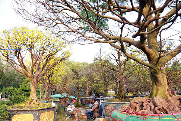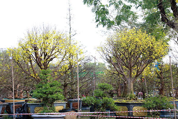 Hội hoa xuân ở Phú Mỹ Hưng (quận 7, TP.HCM) năm nay xuất hiện nhiều cây mai vàng “khủng” được chào giá bán từ vài trăm triệu đến vài tỷ đồng.