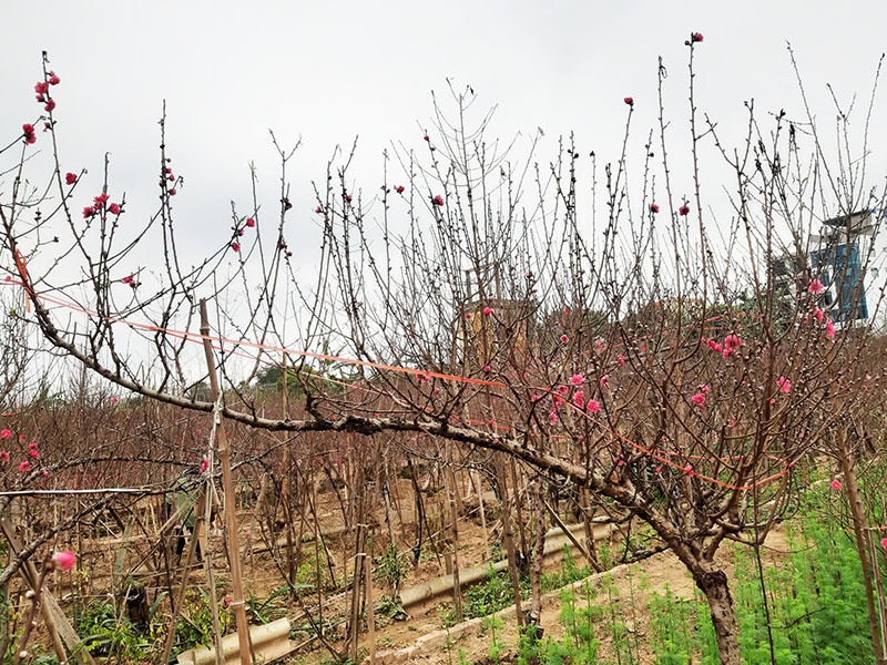 Anh Lê Văn Hiếu - nhà vườn trồng đào ở Nhật Tân - cũng cho biết, gia đình anh có 3 vườn đào, 2 vườn đào là dáng trực truyền thống để chặt cành đem bán, 1 vườn là dáng huyền. Dịp Tết Tân Sửu này, vườn đào cành dáng trực mới chỉ tiêu thụ hết khoảng 60%, còn vườn đào dáng huyền thì “cháy hàng” từ cách đây 3 ngày dù có giá khá đắt đỏ.