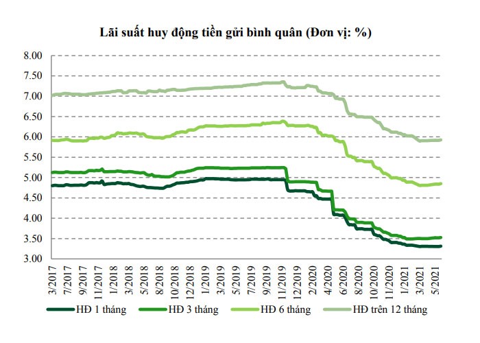 Theo đánh giá của chứng khoán ngân hàng Vietcombank (VCBS), thực tế trong nửa đầu năm 2021, lãi suất huy động có mức giảm khoảng 0,3% và sau đó ổn định ở mặt bằng thấp.