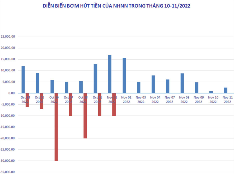 Tổng cộng, qua hai kênh, từ ngày 31/10-11/11, NHNN đã bơm ra thị trường 117.126 tỷ đồng.