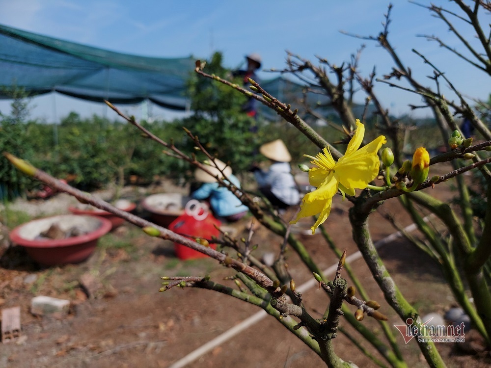 Theo chủ vườn mai Phương Bình (TP. Thủ Đức) - anh Nguyễn Ngọc Phương, những năm trước dịch, mỗi vụ Tết có đến cả trăm người tới hái lá kín vườn. Riêng chi phí thuê nhân công đã từ 300-350 triệu đồng.