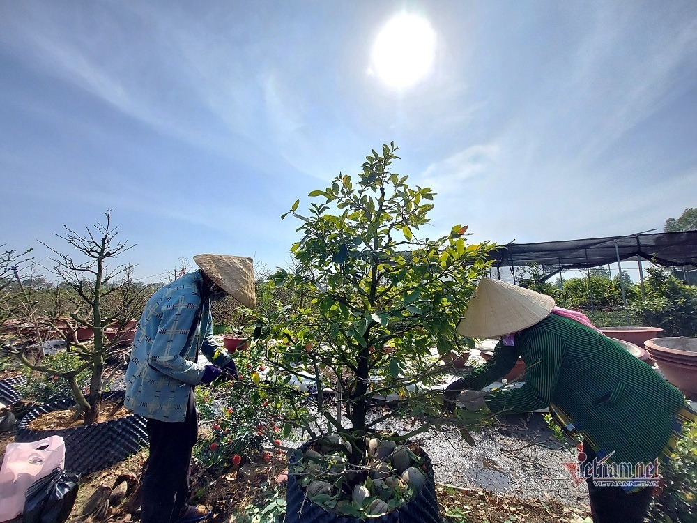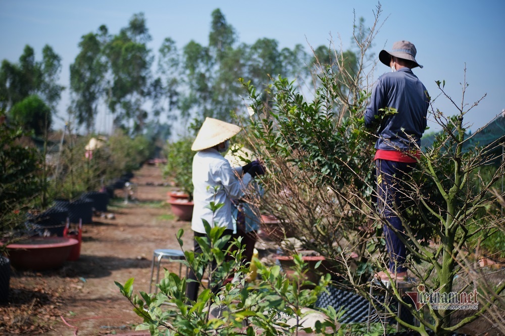 Tuy nhiên, do ảnh hưởng của dịch bệnh Covid-19 nên Tết 2022 nông dân không bán được hàng, không xuống lá đại trà như các năm trước dịch. Các nhà vườn chỉ chọn những cây nào có thương lái hoặc khách đã đặt hàng, cây dáng đẹp để xuống lá. Nông dân chọn lọc cây chứ không xuống lá cả cánh đồng vì tốn nhân công, tốn chi phí. Sức mua thị trường không có nên số lượng nhân công hái lá năm nay giảm rất nhiều.