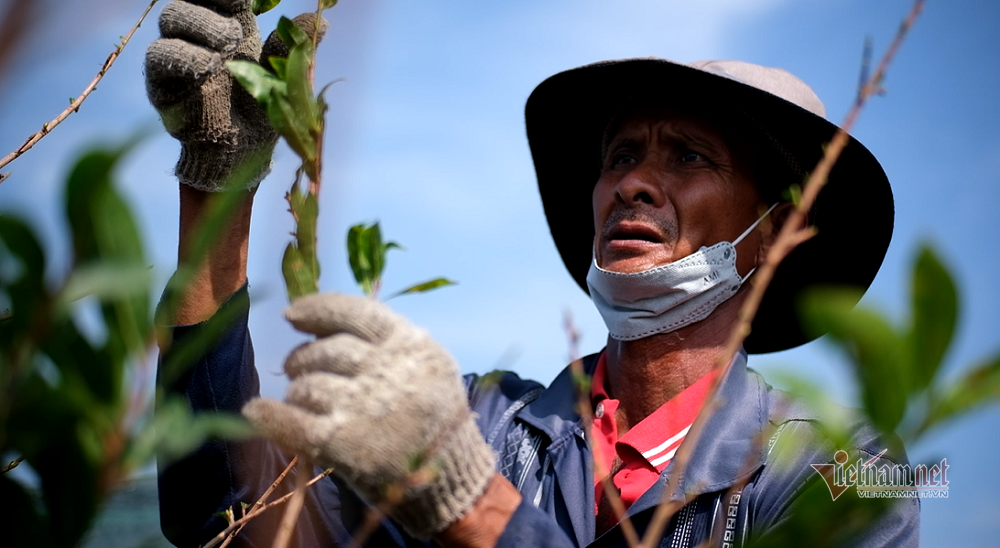 Ông Lê Thành Được (54 tuổi, Bình Chánh) chia sẻ, các nhân công nam thường ngày cuốc đất cho vườn, bứng chuyển gốc mai. Sau đó chuyển sang làm cỏ, dọn gốc. Đến thời điểm cần hái lá thì chủ vườn liên hệ. Ngày công nhặt lá là 300.000 đồng/ngày, cuốc đất 375.000 đồng/ngày.