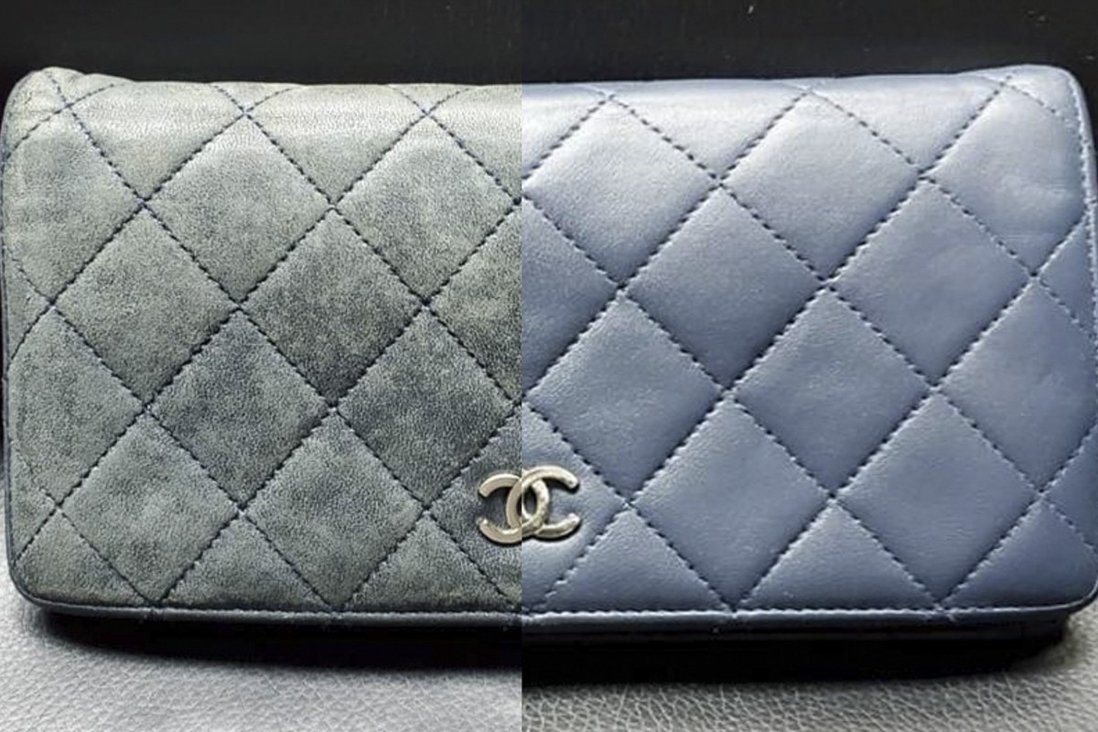 Ông Ng, 58 tuổi, đang sửa một chiếc túi Chanel có lớp da đã sờn rách. Ông cẩn thận cho thêm những lớp thạch cao trộn với sơn, để khô rồi đánh giấy ráp trước khi dùng da đen bọc lại. Sau đó, ông sơn lên vài lớp nữa, cứ mỗi lớp sơn là một lần sấy khô bằng máy sấy tóc.