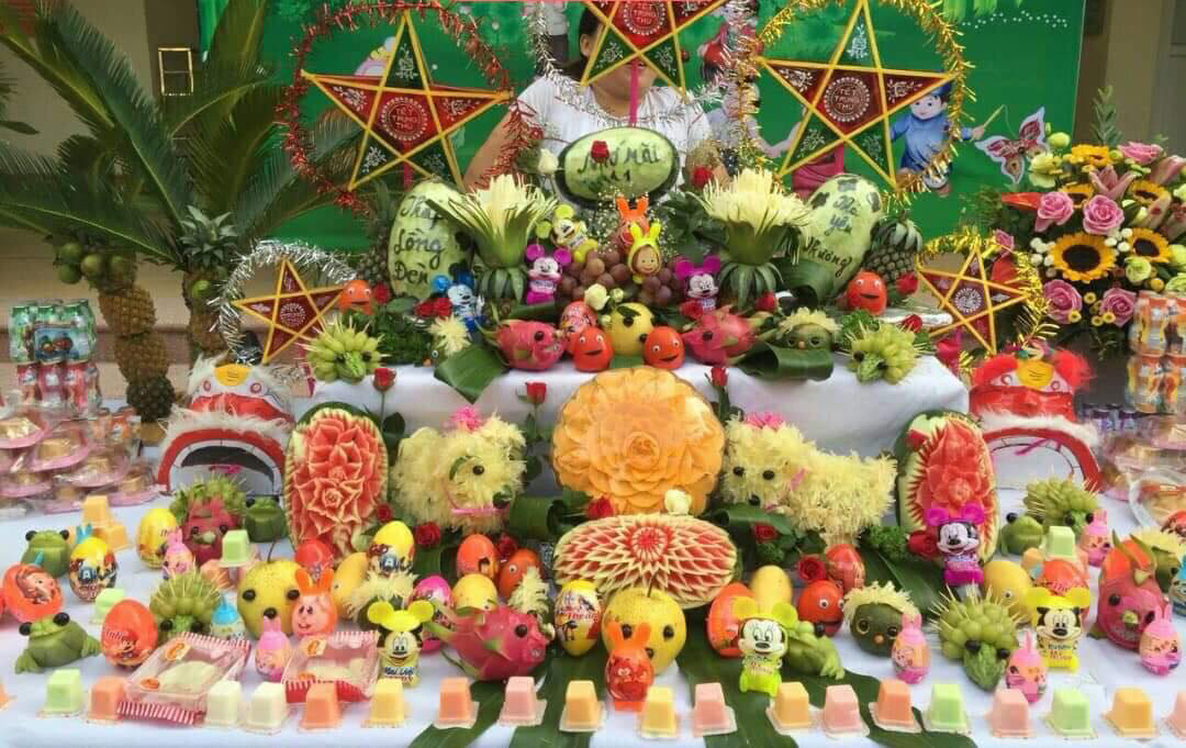 Tết Trung thu hay còn gọi là Rằm tháng Tám, là dịp các bạn nhỏ rất mong đợi. Vì thế, nhiều trường học, ngõ xóm và tại các gia đình đều bày biện những mâm cỗ Trung thu nhiều màu sắc từ hoa quả và bánh trái.