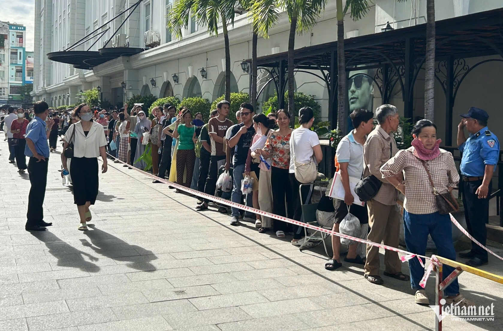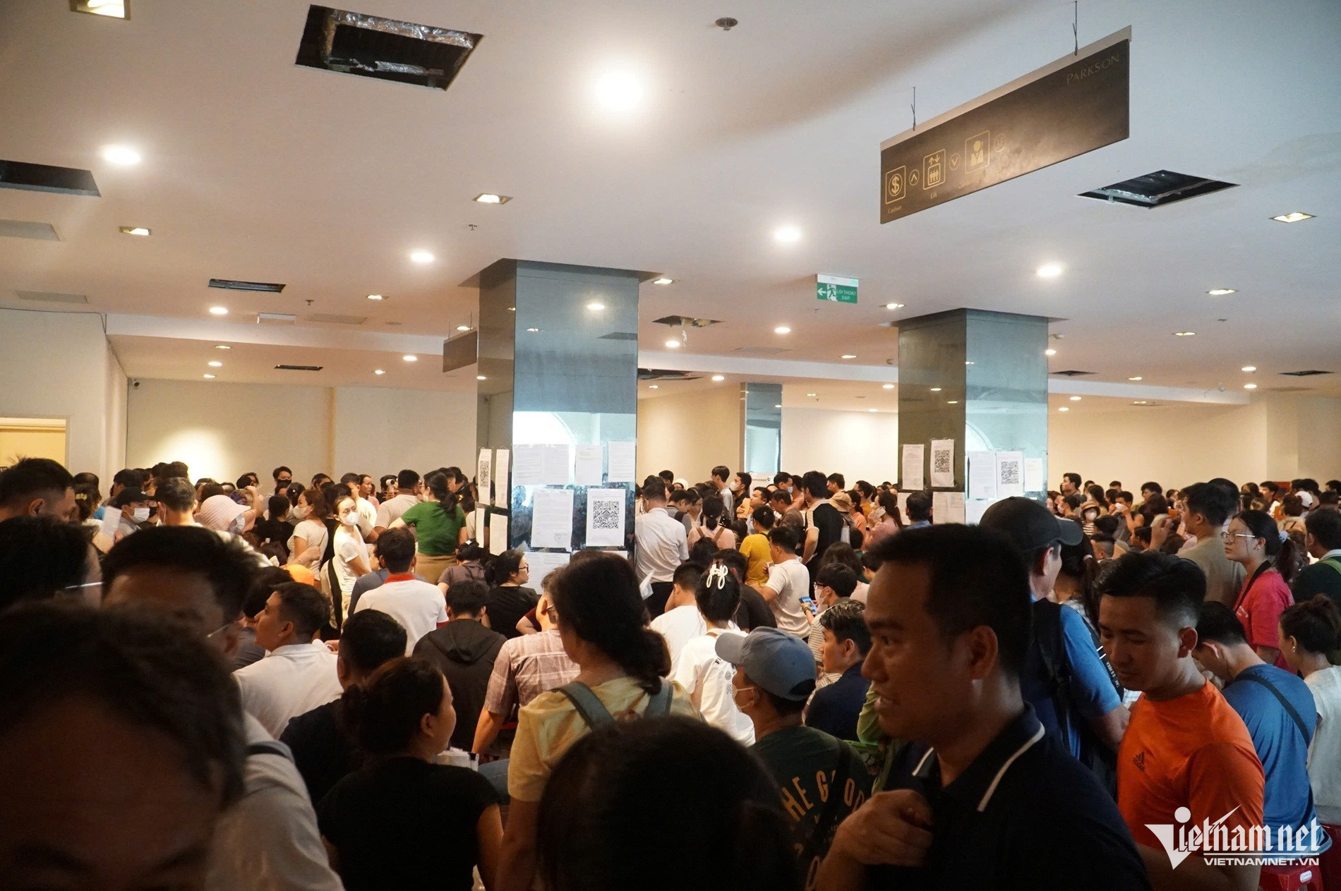 Lượng người tiếp tục tăng khiến khu vực trước cổng công ty rơi vào cảnh chen lấn, xô đẩy dưới thời tiết nắng nóng. Phía bên trong công ty cũng chật kín người dân.