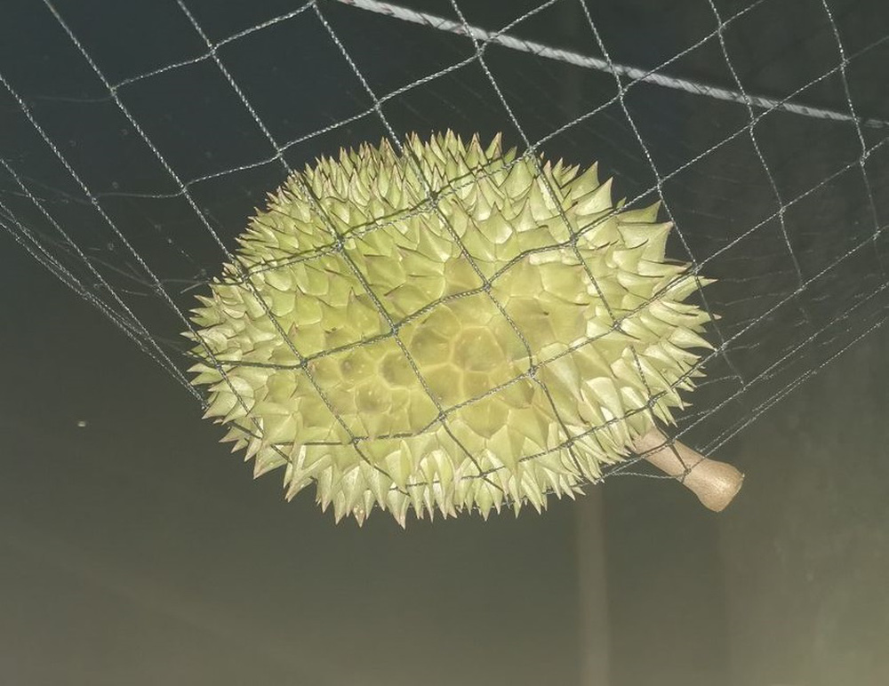 "Quả sầu riêng mọc trên cây trước nhà, mà chúng tôi thường giăng lưới chờ sẵn để tránh rơi xuống đất. Tuy nhiên, quả này có lẽ đã xuyên qua khe hở nhỏ giữa các tấm lưới và trúng xe tôi", người đàn ông nói.