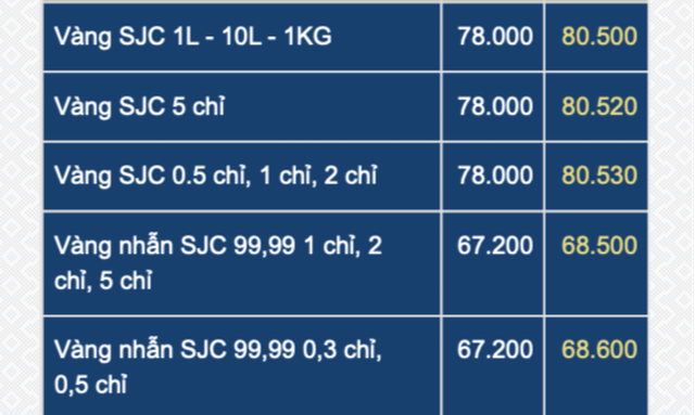 Một số doanh nghiệp khác giao dịch vàng SJC dưới mốc 80 triệu đồng/lượng, như Tập đoàn DOJI niêm yết mua vào 77,5 triệu đồng/lượng, bán ra 79,9 triệu đồng/lượng, "bốc hơi" hơn 2,5 triệu đồng/lượng.