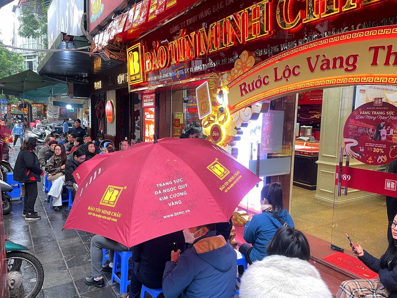 Ghi nhận của chúng tôi, sáng cùng ngày, dù thời tiết ở Hà Nội không thuận lợi, trời mưa lạnh nhưng các tiệm vàng lớn tại Hà Nội như SJC, Phú Quý, DOJI, Bảo Tín Minh Châu ở phố Trần Nhân Tông (Hai Bà Trưng, Hà Nội) vẫn tấp nập người ra vào. Tại một số tiệm vàng lớn ở đây, đông nghịt người xếp hàng chờ mua vàng, nhiều người chờ đợi hơn 1 tiếng đồng hồ nhưng vẫn chưa đến lượt.