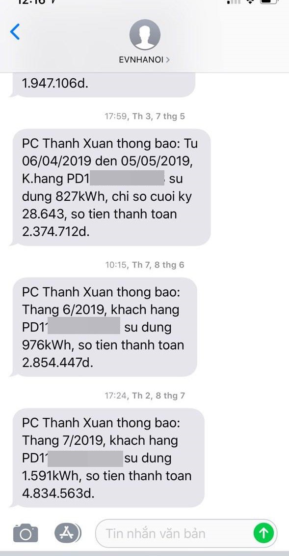 Trong khi đó, chị Nguyễn Trang (Núi Trúc, Ba Đình, Hà Nội) cùng bày tỏ thắc mắc khi tiền điện tháng này tăng đột biến dù chị vẫn dùng điện tương tự tháng trước, không hề phát sinh thêm thiết bị điện nào. "Mình hiện sống một mình, toàn đi làm từ sáng đến tối mới về nhà. Các thiết bị điện cũng như điều hòa chỉ sử dụng từ khoảng 20h tối đến khoảng 8h sáng hôm sau, nhưng tiền điện tháng này cũng đã lên 1,3 triệu đồng, tăng 500.000 đồng so với tháng 5 trước đó".