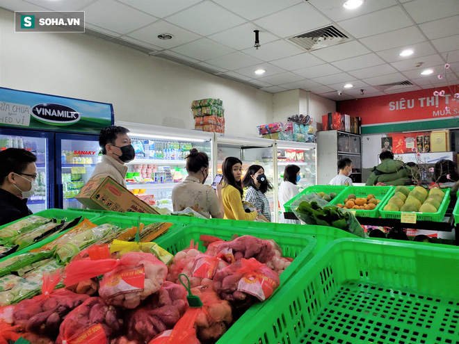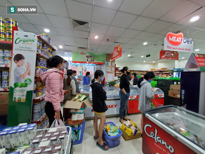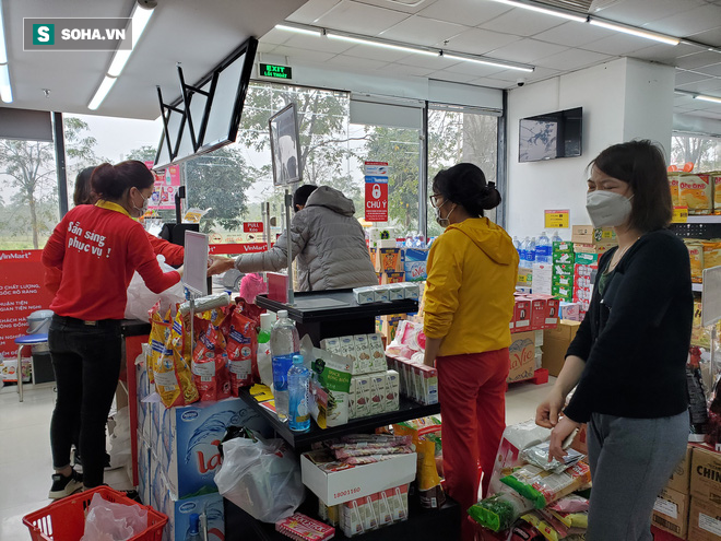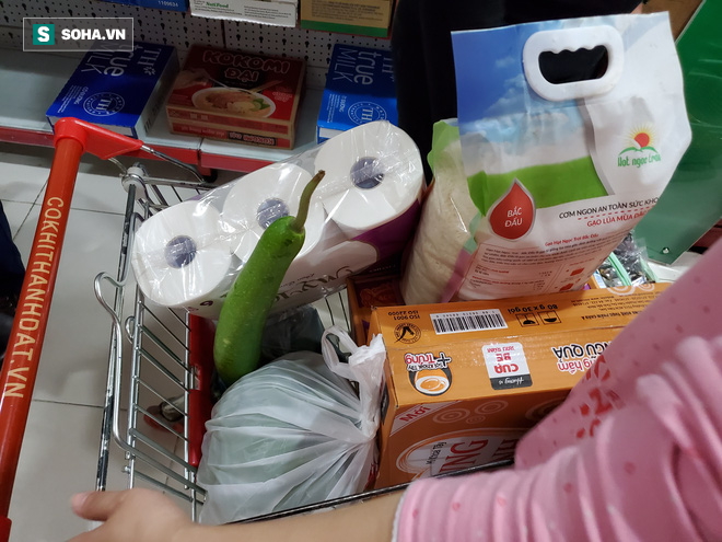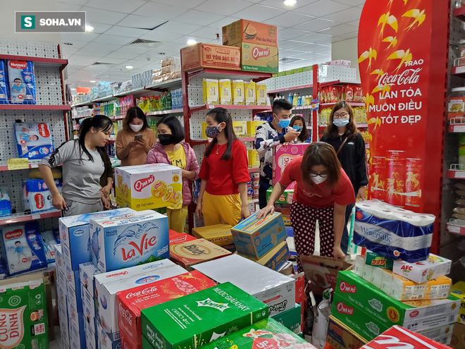 Sáng nay, các siêu thị, cửa hàng tạp hóa ở nhiều tuyến phố Hà Nội đều tăng đột biến khách mua. Trong đó, gạo, mỳ tôm, giấy vệ sinh... là mặt hàng được lựa chọn nhiều nhất.