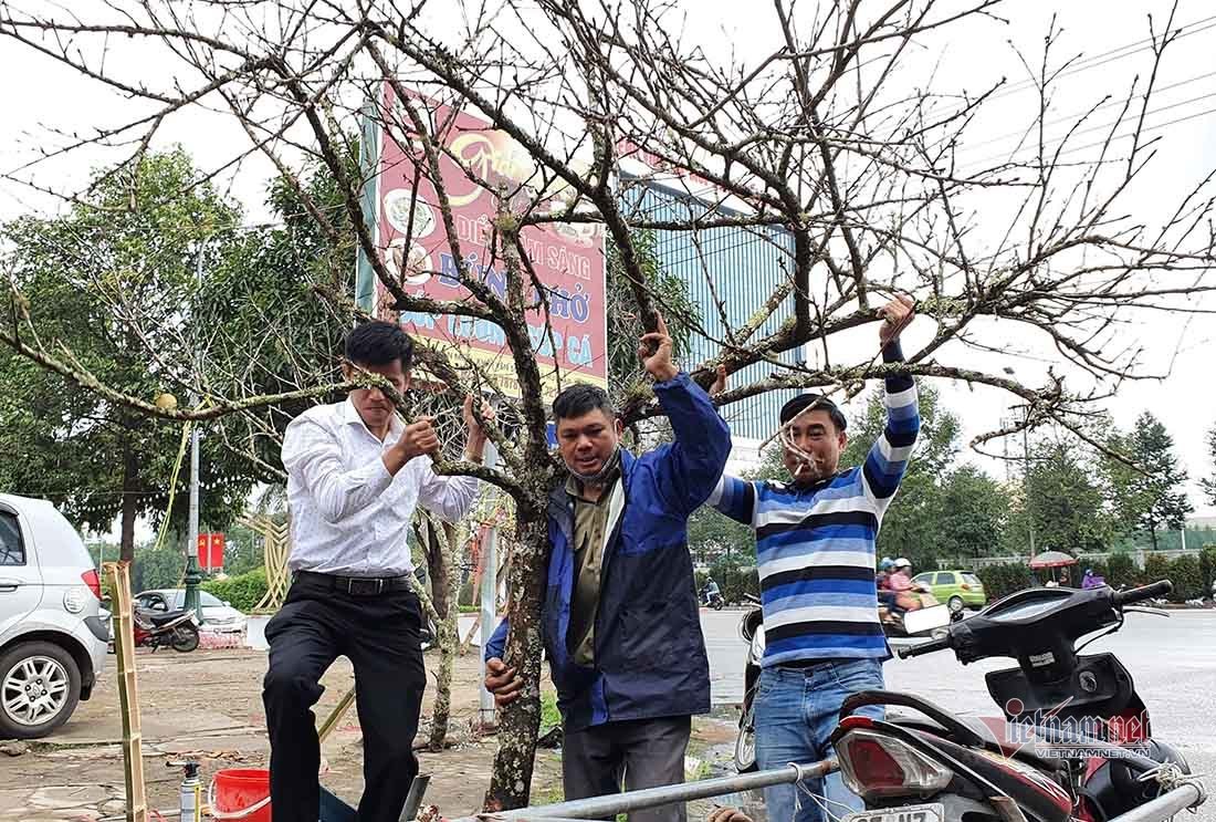 Anh Nguyễn Văn Tiến (trú tại xã Nghi Ân, TP. Vinh, Nghệ An) cho biết, hằng năm, qua rằm tháng Chạp, nhóm buôn của anh bắt đầu lên các huyện miền núi Nghệ An như Kỳ Sơn, Quế Phong tìm mua đào về bán Tết.