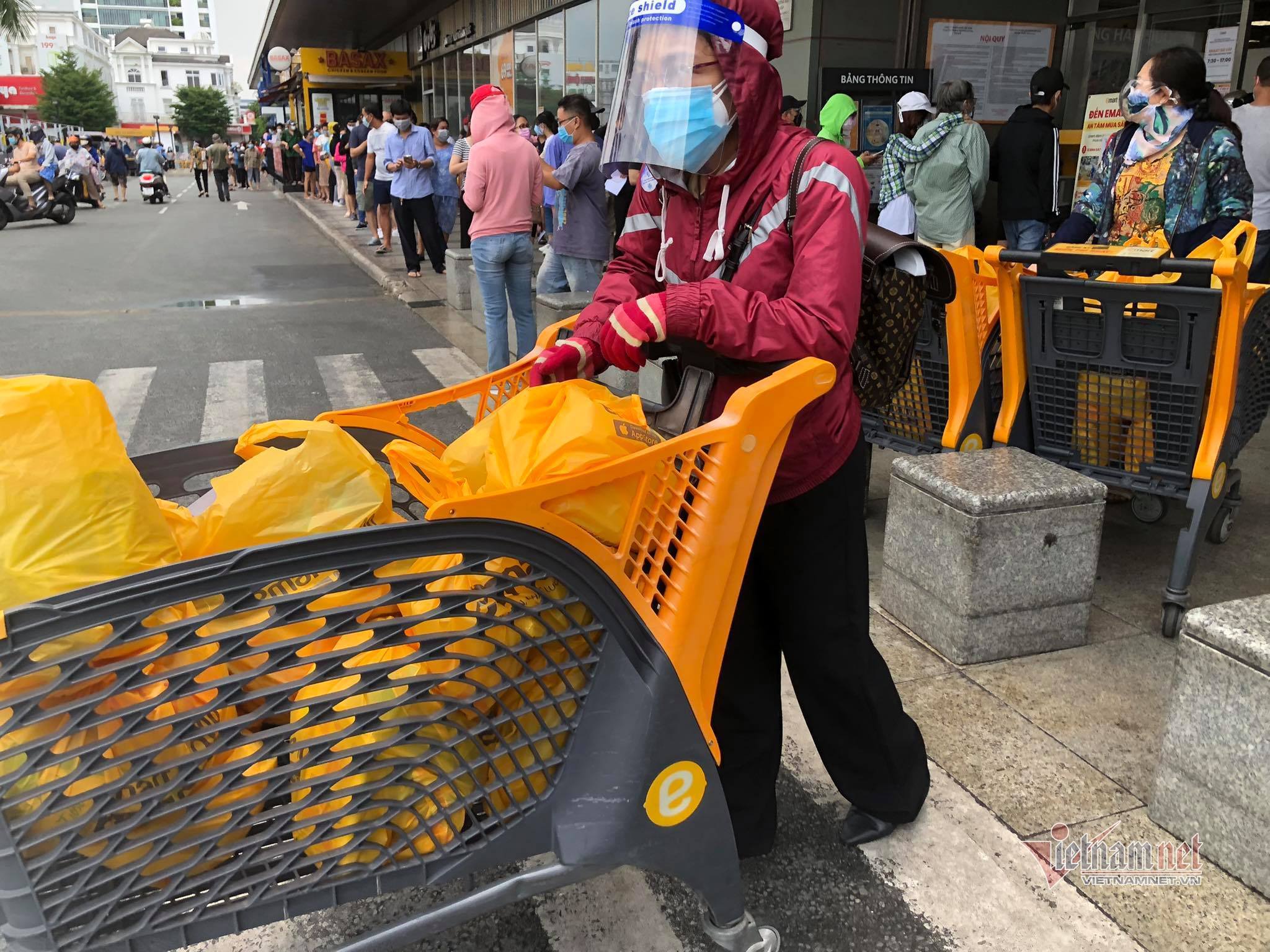 Trưa cùng ngày, tại các siêu thị, rất đông người dân đã dồn về xếp hàng để vào mua sắm những vật dụng thiết yếu, chuẩn bị cho đợt cách ly dài ngày này.